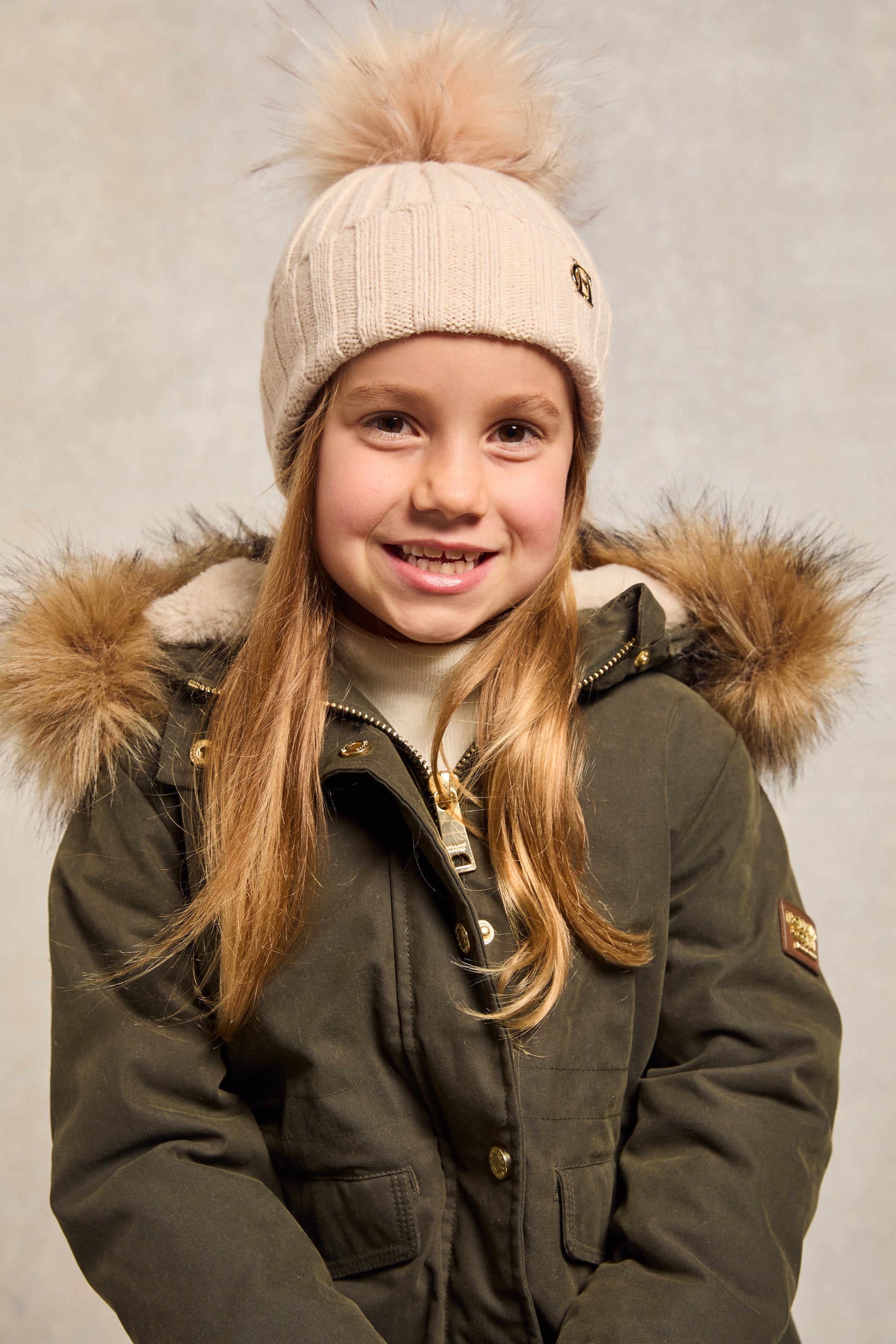 The Little Knitted Hat is a beautifully crafted children's accessory, designed with both style and comfort in mind. Made from premium ribbed yarn, this hat provides a snug, cozy fit that’s perfect for keeping little ones warm. The stretch ribbed hem is detailed with a small gold HC rivet, adding a touch of sophistication and brand signature detailing to the design. Topped with a luxurious faux fur bobble available in premium colours, this hat effortlessly combines playful charm with a high-end finish. The acrylic blend ensures it’s soft to the touch, offering all-day comfort for your child, making it an essential addition to their winter wardrobe.