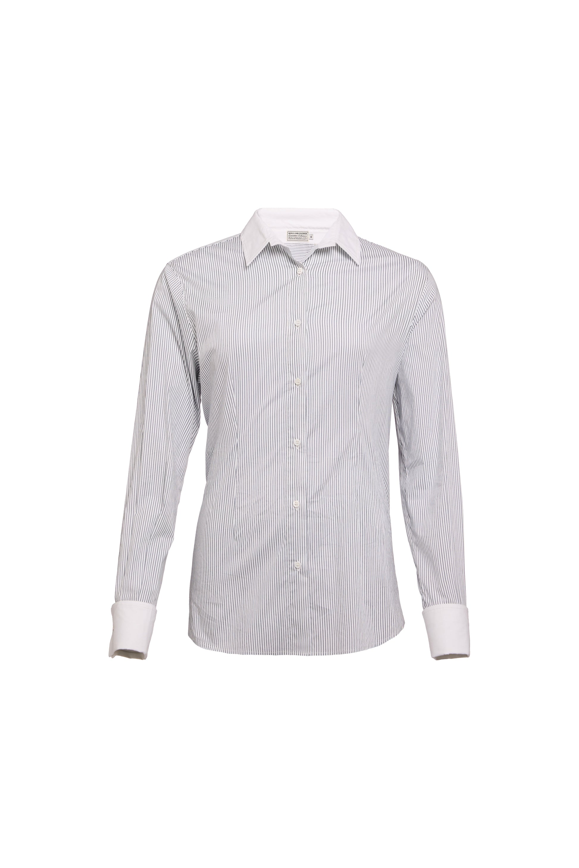 This refined staple combines timeless elegance with modern sophistication, featuring a classic button-down silhouette enhanced with carefully placed shaping darts for a flattering feminine fit. The shirt is adorned with engraved four-hole poly buttons and our signature gold HC cufflinks on the double cuffs. Distinguished by our heritage HC embroidery and gold branding tab, this piece exemplifies British luxury and sartorial excellence. A wardrobe essential that transitions effortlessly.