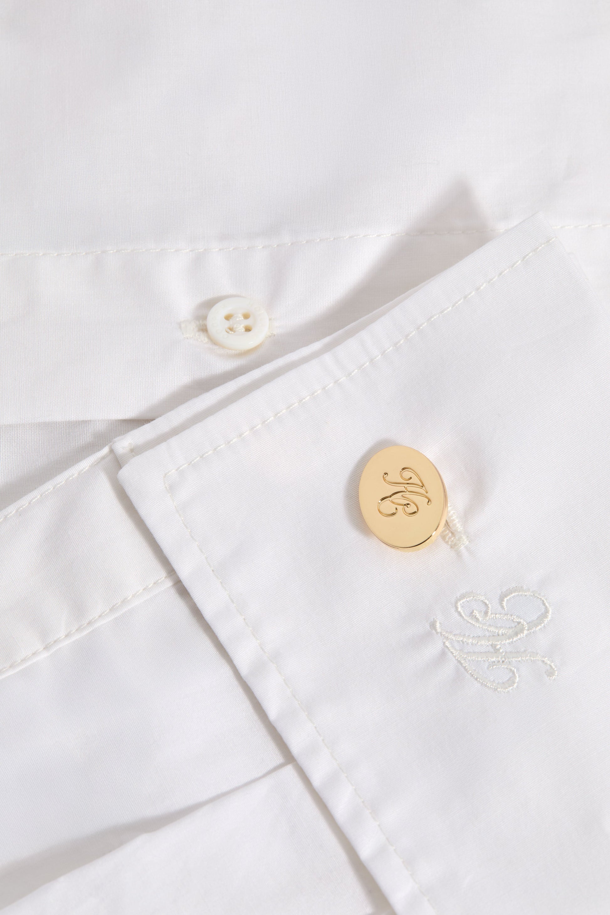 This refined staple combines timeless elegance with modern sophistication, featuring a classic button-down silhouette enhanced with carefully placed shaping darts for a flattering feminine fit. The shirt is adorned with engraved four-hole poly buttons and our signature gold HC cufflinks on the double cuffs. Distinguished by our heritage HC embroidery and gold branding tab, this piece exemplifies British luxury and sartorial excellence. A wardrobe essential that transitions effortlessly.