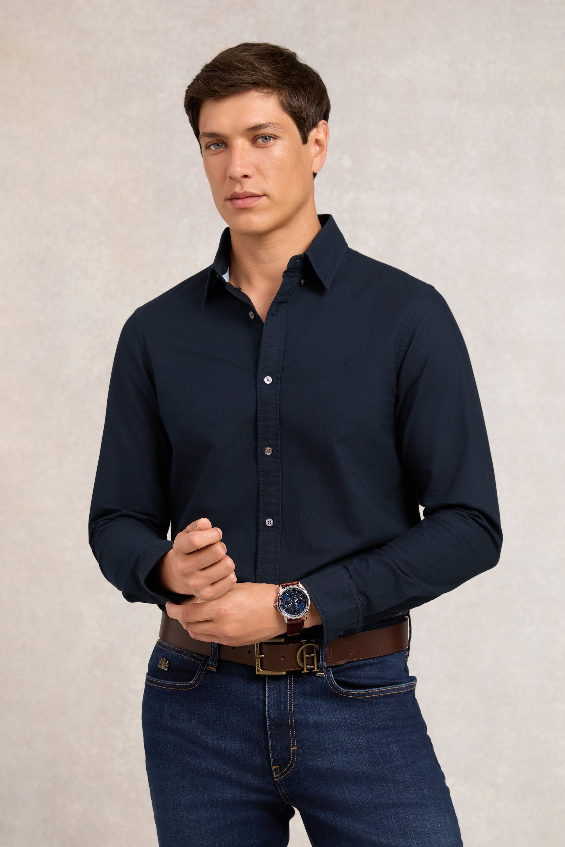 A timeless staple with enduring appeal, the Men’s Oxford Shirt has been expertly crafted for both smart and casual styling. Featuring a classic button-down collar and traditional button-through front, this shirt is finished with contrast HC embroidery to the chest and signature Holland Cooper branded buttons for a refined touch.