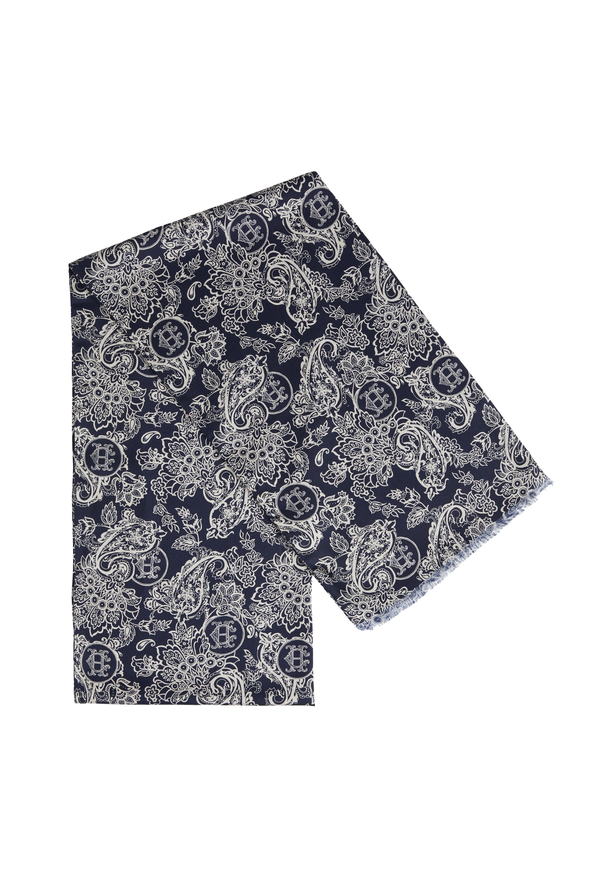 Men's Silk Scarf (Ink Navy Cream Paisley)
