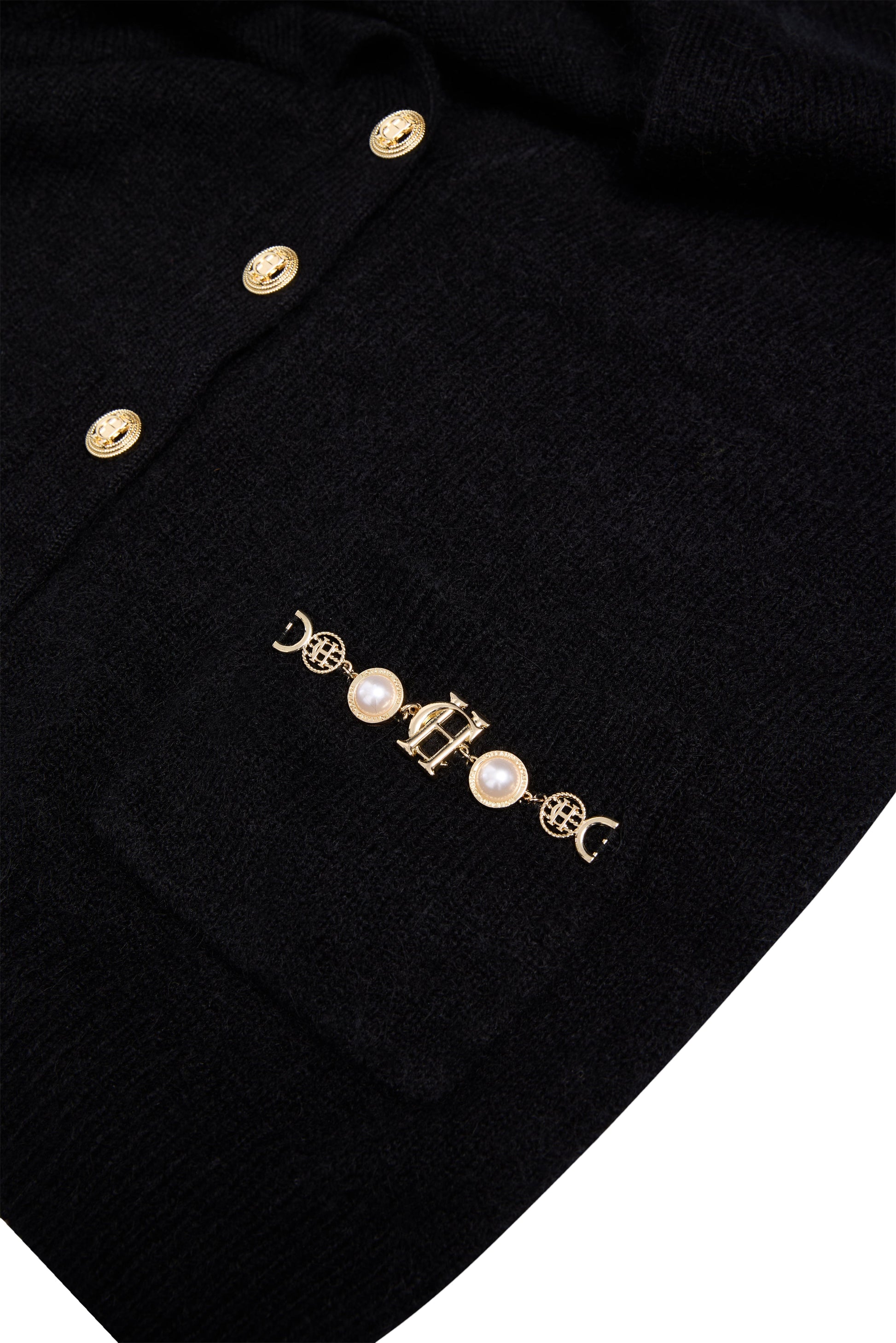 The Mila Cardigan is the perfect blend of comfort and sophistication, designed for a relaxed fit that drapes effortlessly over any outfit. This V-neck cardigan is crafted from a sumptuous mohair blend, providing a soft and cozy feel while maintaining a lightweight and breathable quality. The front is adorned with signature gold buttons that add a refined, elegant touch, while the HC pocket charms offer a subtle nod to timeless style.