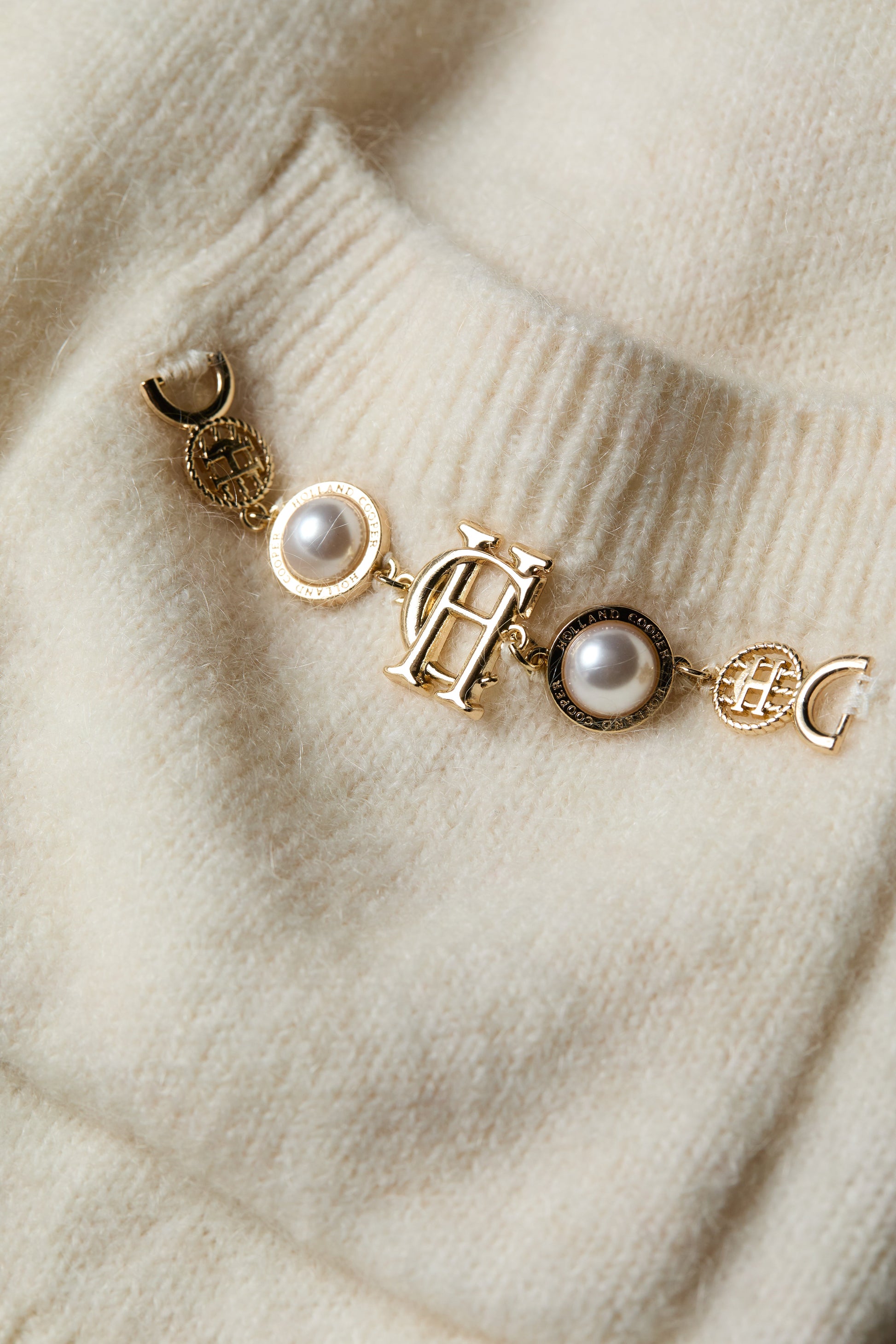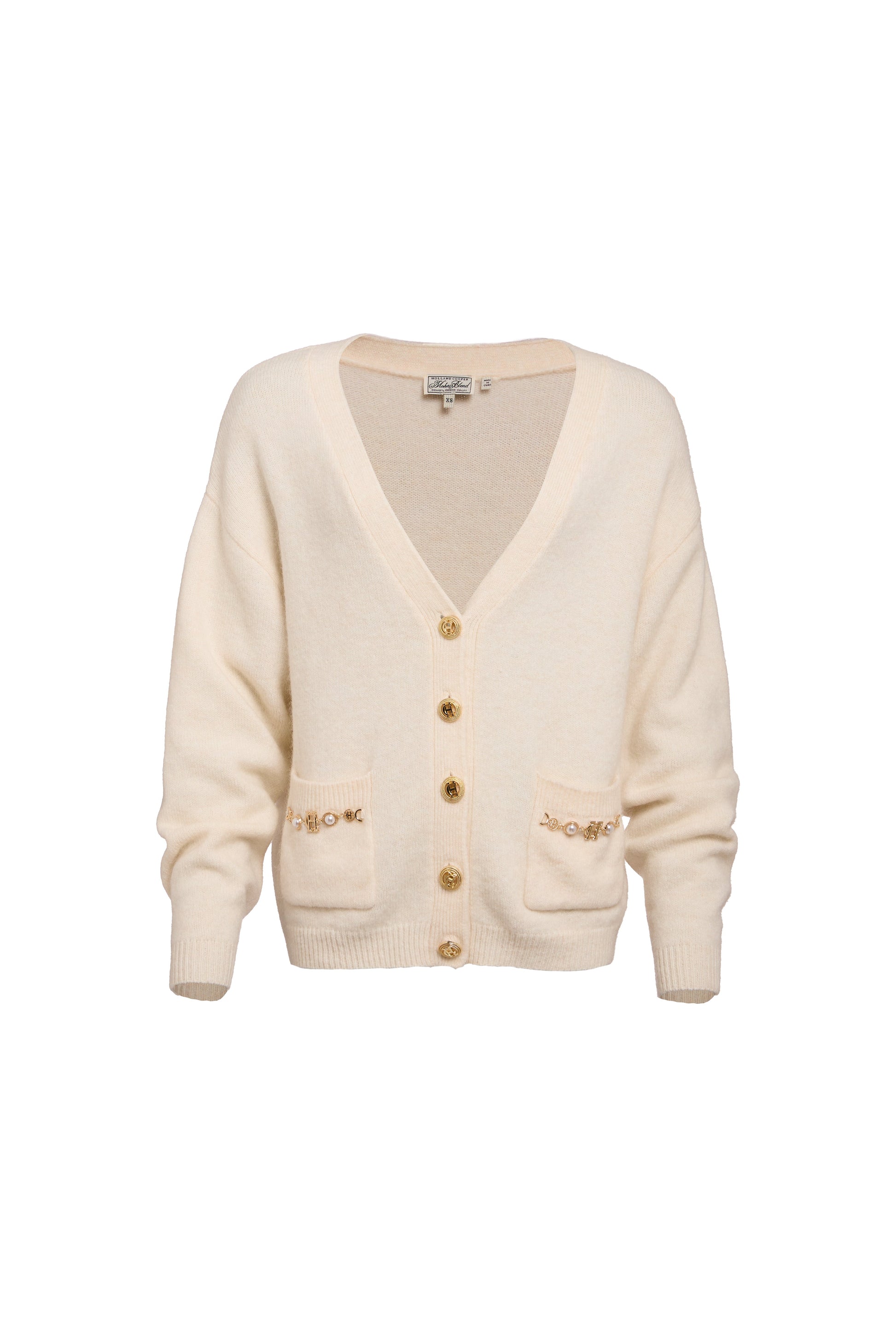 The Mila Cardigan is the perfect blend of comfort and sophistication, designed for a relaxed fit that drapes effortlessly over any outfit. This V-neck cardigan is crafted from a sumptuous mohair blend, providing a soft and cozy feel while maintaining a lightweight and breathable quality. The front is adorned with signature gold buttons that add a refined, elegant touch, while the HC pocket charms offer a subtle nod to timeless style.