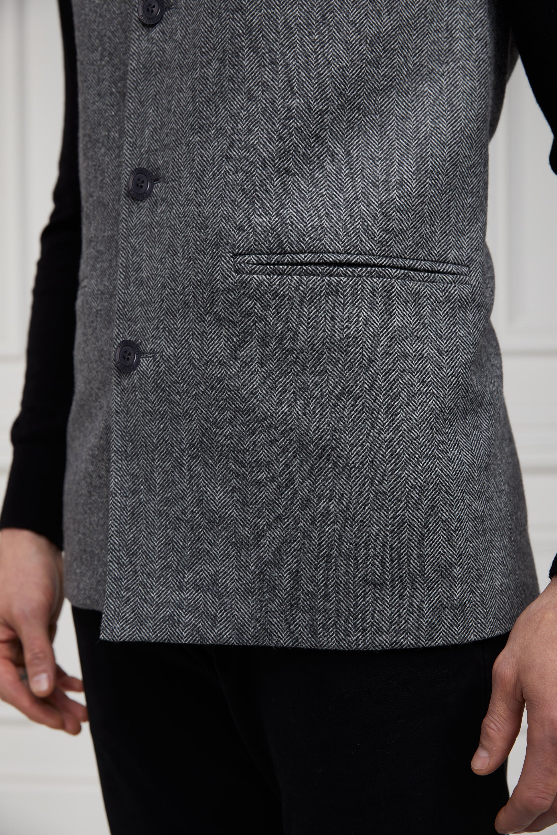 Neatly cut with a classic fit, this timeless waistcoat has been handcrafted to perfection in the UK from Scottish heritage wools. With a traditional nehru stand collar, this waistcoat will effortlessly elevate your country wardrobe. Specifically designed to allow for the front pocket to showcase a pocket flap or tuck away to reveal a double welt pocket, you can style this piece to perfection. Detailed with a satin twill lining with an interior ticket pocket and finished with our classic chain hanger loop.