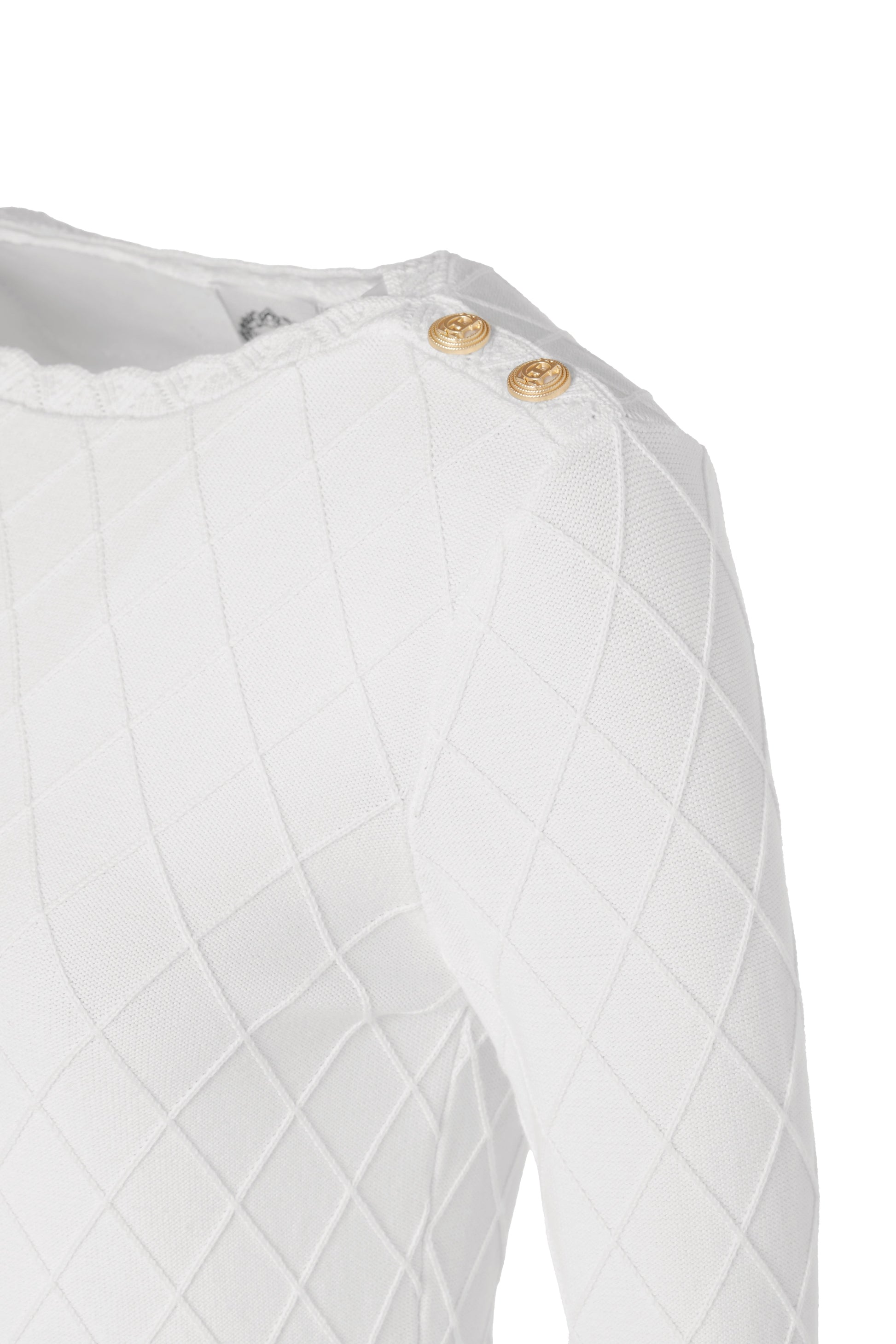 Elegantly crafted from a soft cotton fabric with a diamond pointelle pattern, this summer essential has been designed with a slim-fitting, mini-length silhouette. With kimono-style sleeves that effortlessly complement this modern aesthetic, this dress has been beautifully finished with a touch of femininity through scalloped edging and a scoop neckline.