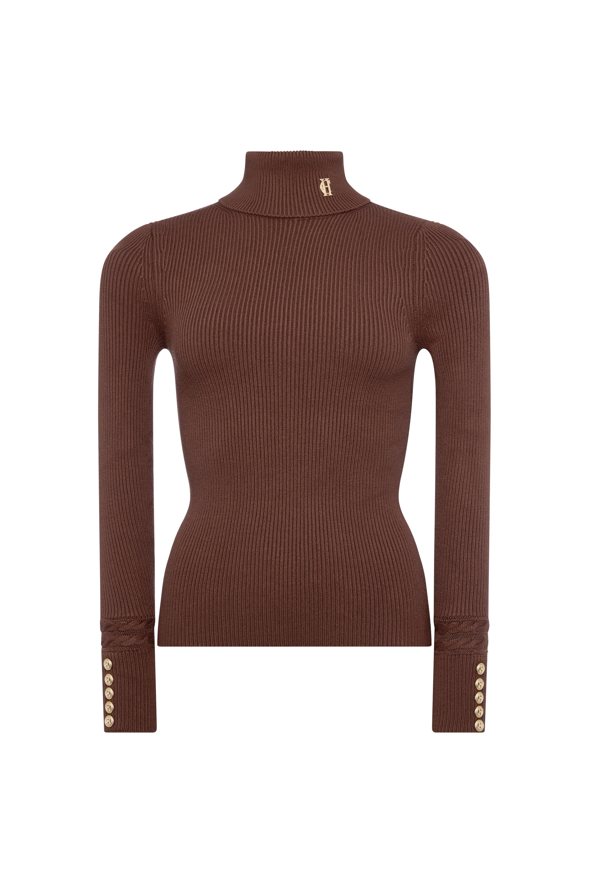 A classic roll neck knit that you will be reaching for in years to come. Crafted in a super soft light weight yarn, this knit was made with comfort and wearability in mind. This jumper is the perfect everyday piece with a relaxed fit and light ribbing to the body. Featuring our iconic gold HC rivets to the cuff as well as our subtle HC on the collar.