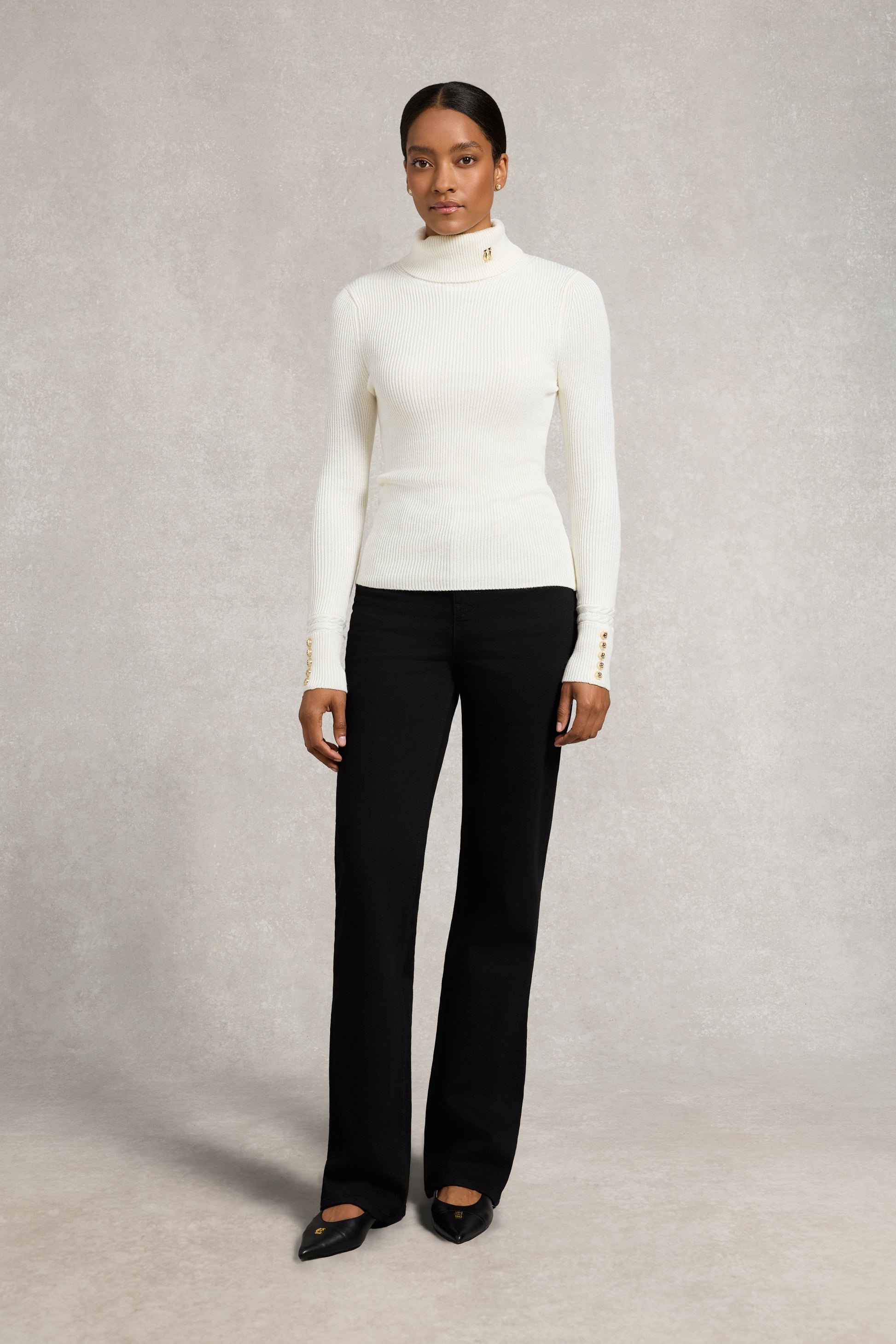 A classic roll neck knit that you will be reaching for in years to come. Crafted in a super soft light weight yarn, this knit was made with comfort and wearability in mind. This jumper is the perfect everyday piece with a relaxed fit and light ribbing to the body. Featuring our iconic gold HC rivets to the cuff as well as our subtle HC on the collar.