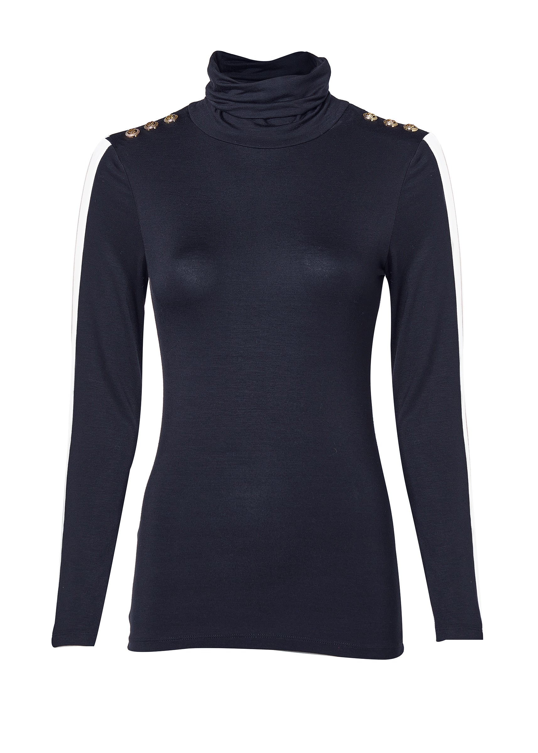 Panel Long Sleeve Roll Neck (Navy Ecru)