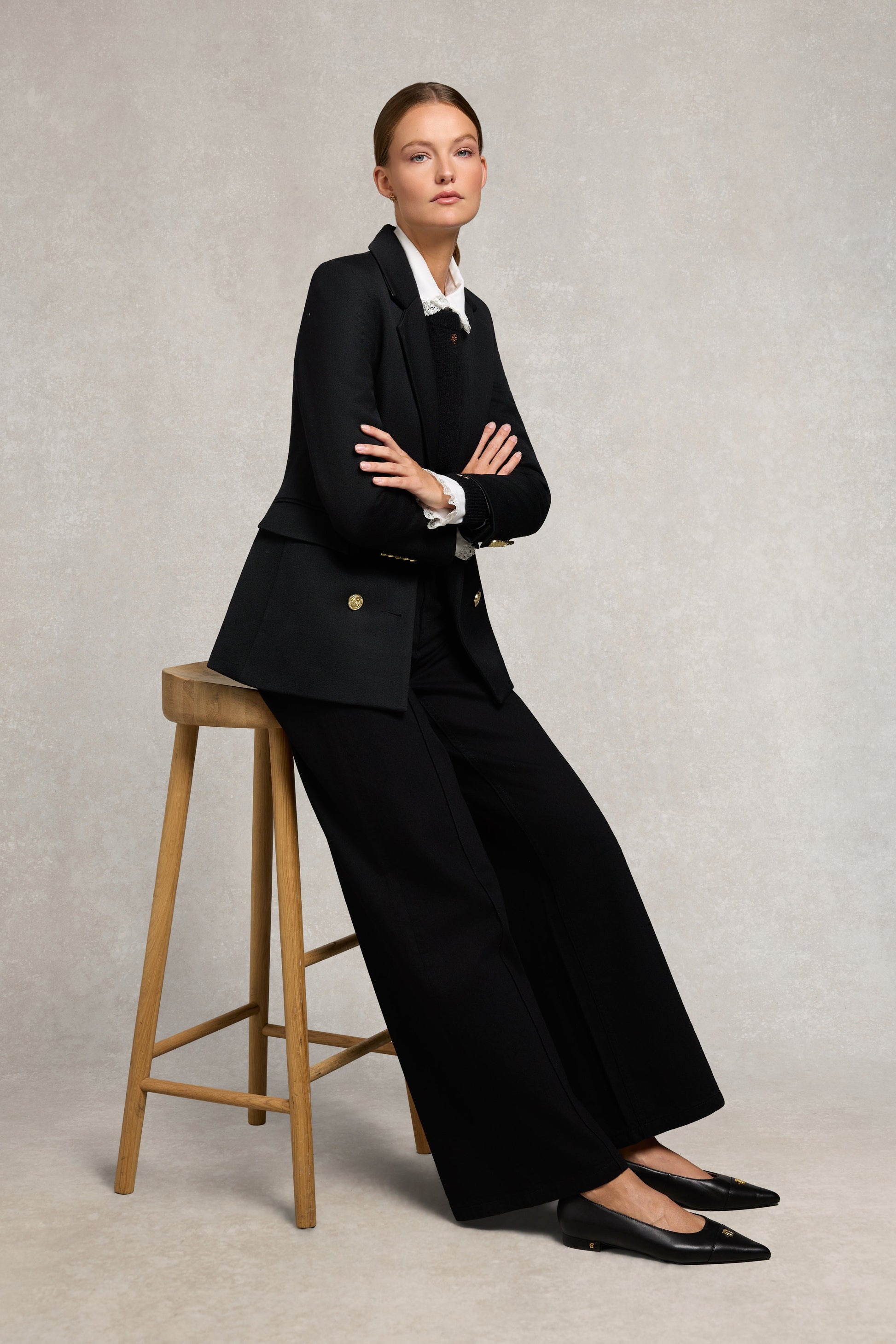 A refined update to our classic ballet flat, this new style features a sleek pointed toe for a more elegant, elongated silhouette. Expertly crafted from smooth cow leather with a matching leather toe panel, the design is finished with our signature HC gold detailing for a touch of understated luxury. With a supple leather upper and padded insole, this shoe blends comfort with sophistication — the perfect finishing touch to elevate both day-to-evening looks.