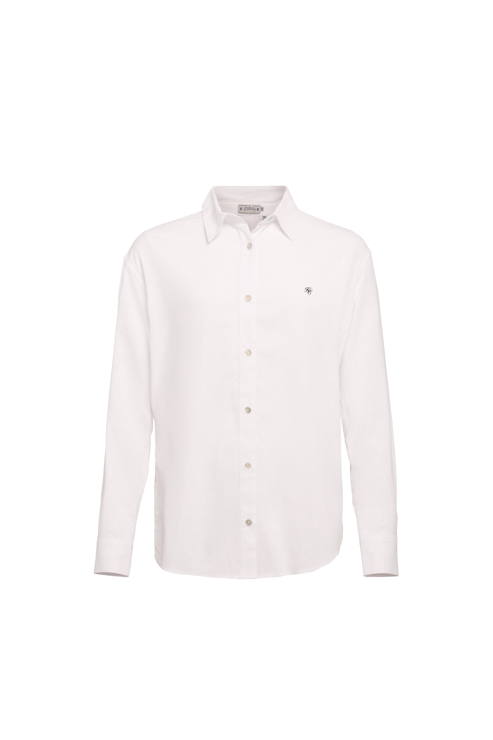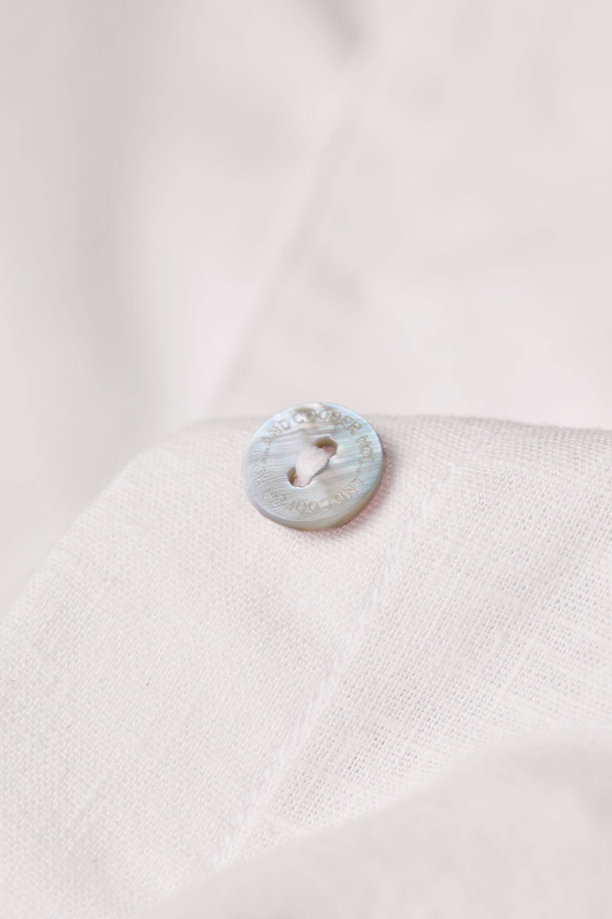 This refined essential combines luxury and comfort, featuring our premium linen blend that offers exceptional breathability with minimal creasing. The relaxed silhouette embodies effortless sophistication. Adorned with lustrous shell buttons and our distinguished gold HC branding tab, this shirt is a versatile wardrobe essential.