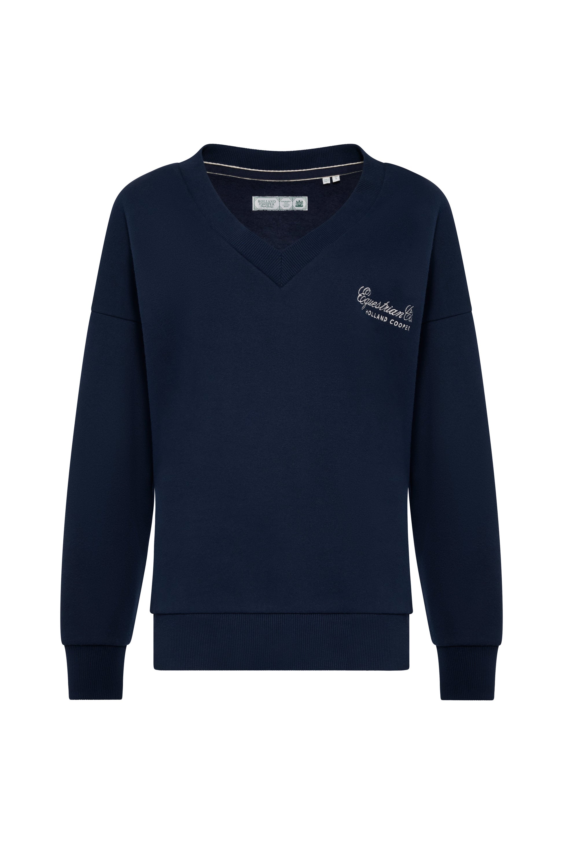 Relaxed Fit V-Neck Sweat (Ink Navy Ecru)