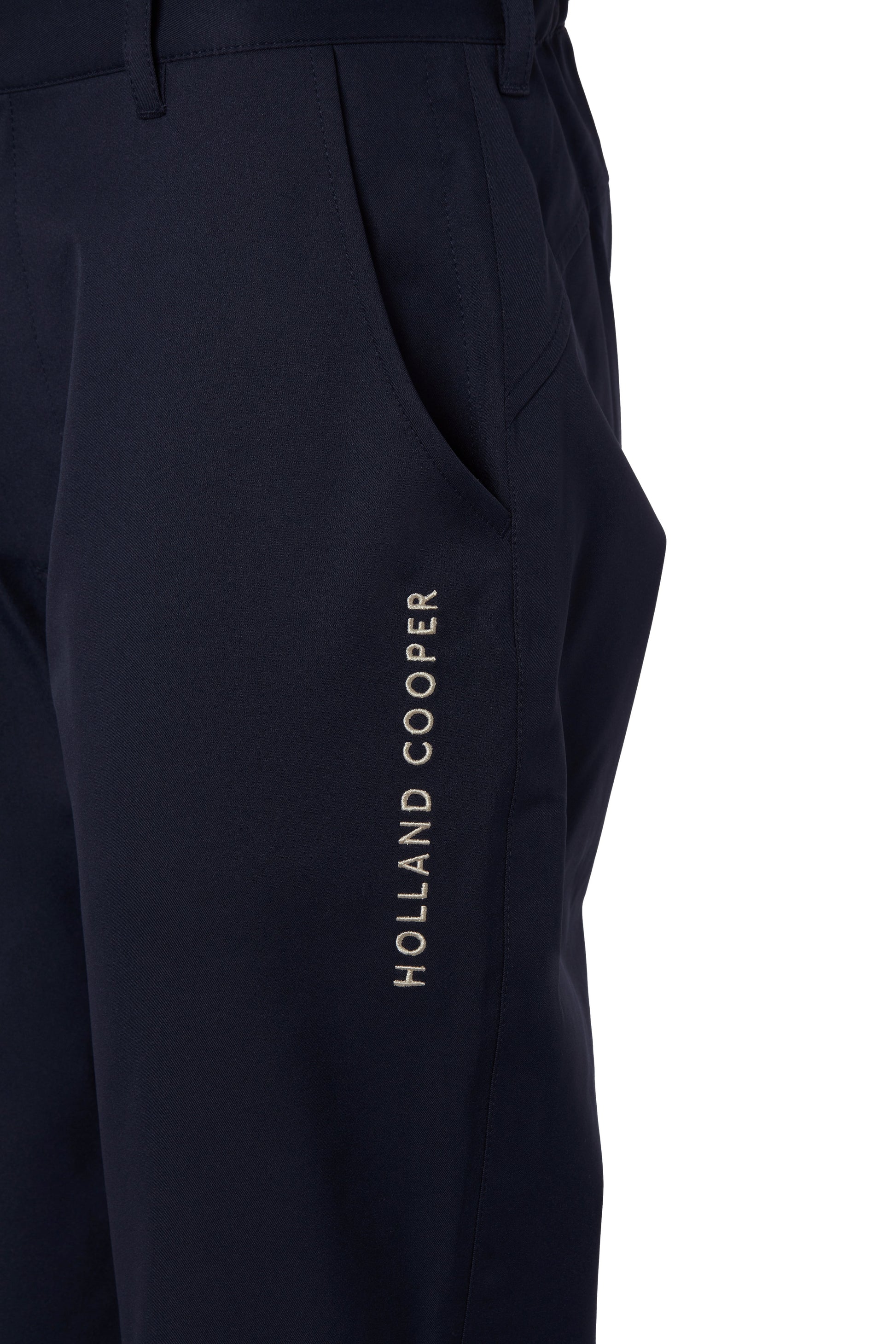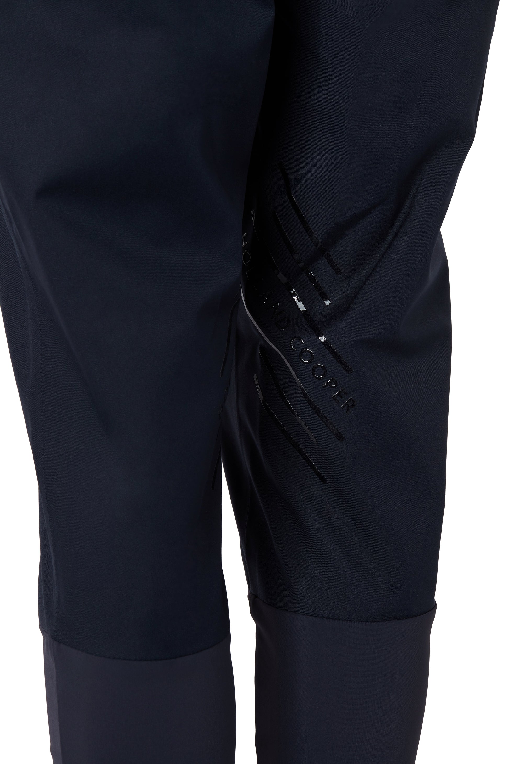 These technical, professional-level waterproof riding trousers are crafted from a high-denier fully waterproof shell fabric. The waterproof inner membrane & taped seams creates a waterproof barrier, protecting from the elements. Designed for comfort and functionality, these trousers feature a jersey lower leg panel to reduce bulk when wearing boots. The shaped back with a band provides added protection to the lower back during rides. The comfortable elasticated waistband, functional zip fly and side entry pockets make them practical for any equestrian activity. For enhanced grip and durability, these trousers boast a grip print to the seat and inner thigh. Finished with our signature gold metal hardware.
