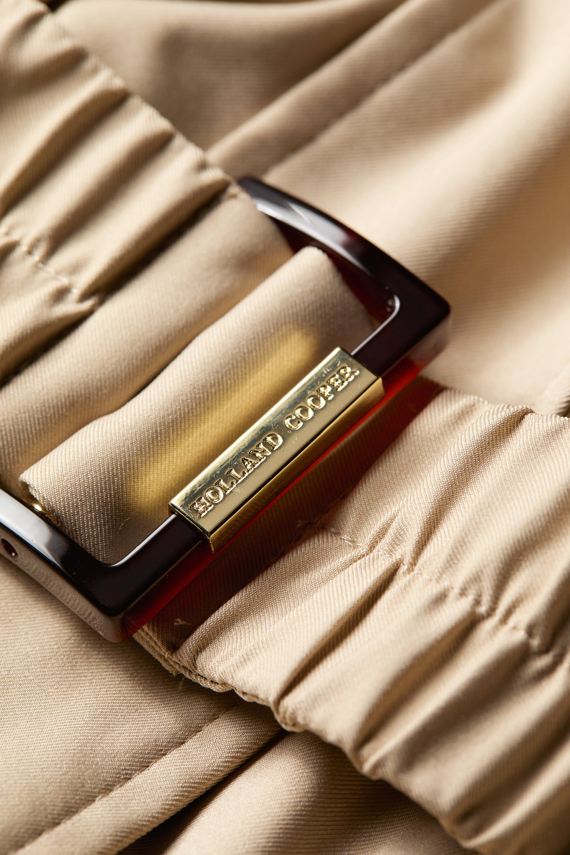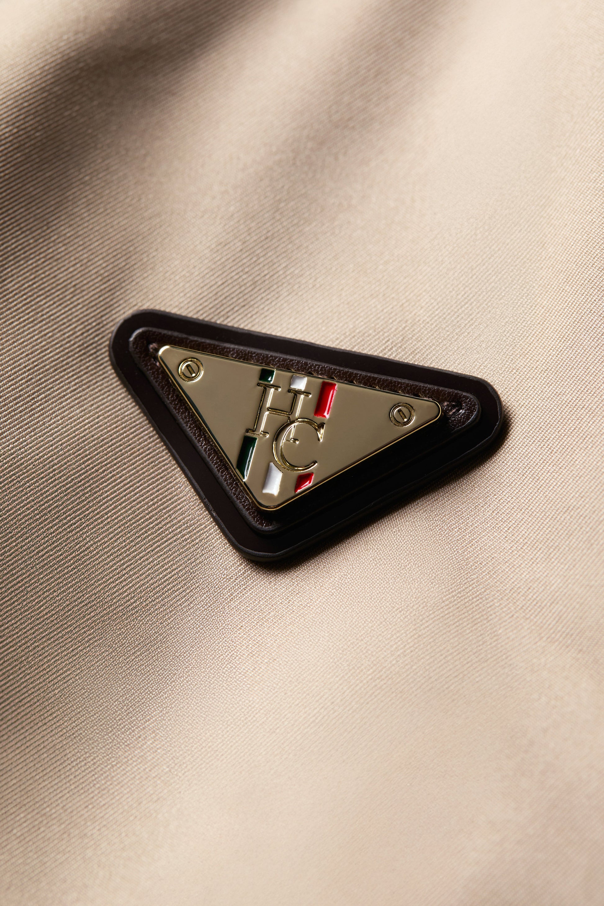 A mid-length technical parka designed for both style and functionality. Crafted from high-density waterproof shell fabric, this coat ensures you stay dry and comfortable in any weather. Featuring a fabric covered elastic belt with a sophisticated tortoiseshell buckle closure. The storm plackets with signature gold snap fastenings and front yoke details add a touch of refinement. The double strap fastening on the cuffs provides a secure fit, and the HC monogram on the back belt loop adds a signature finish.