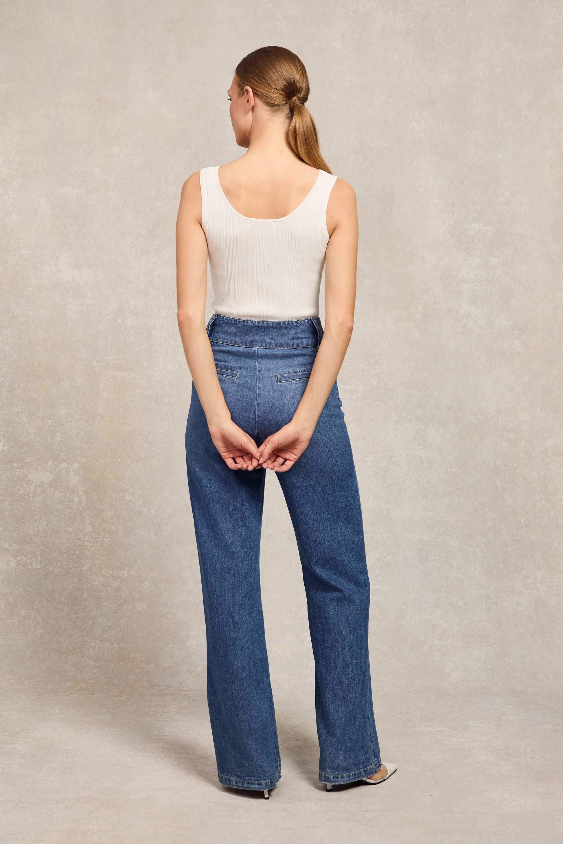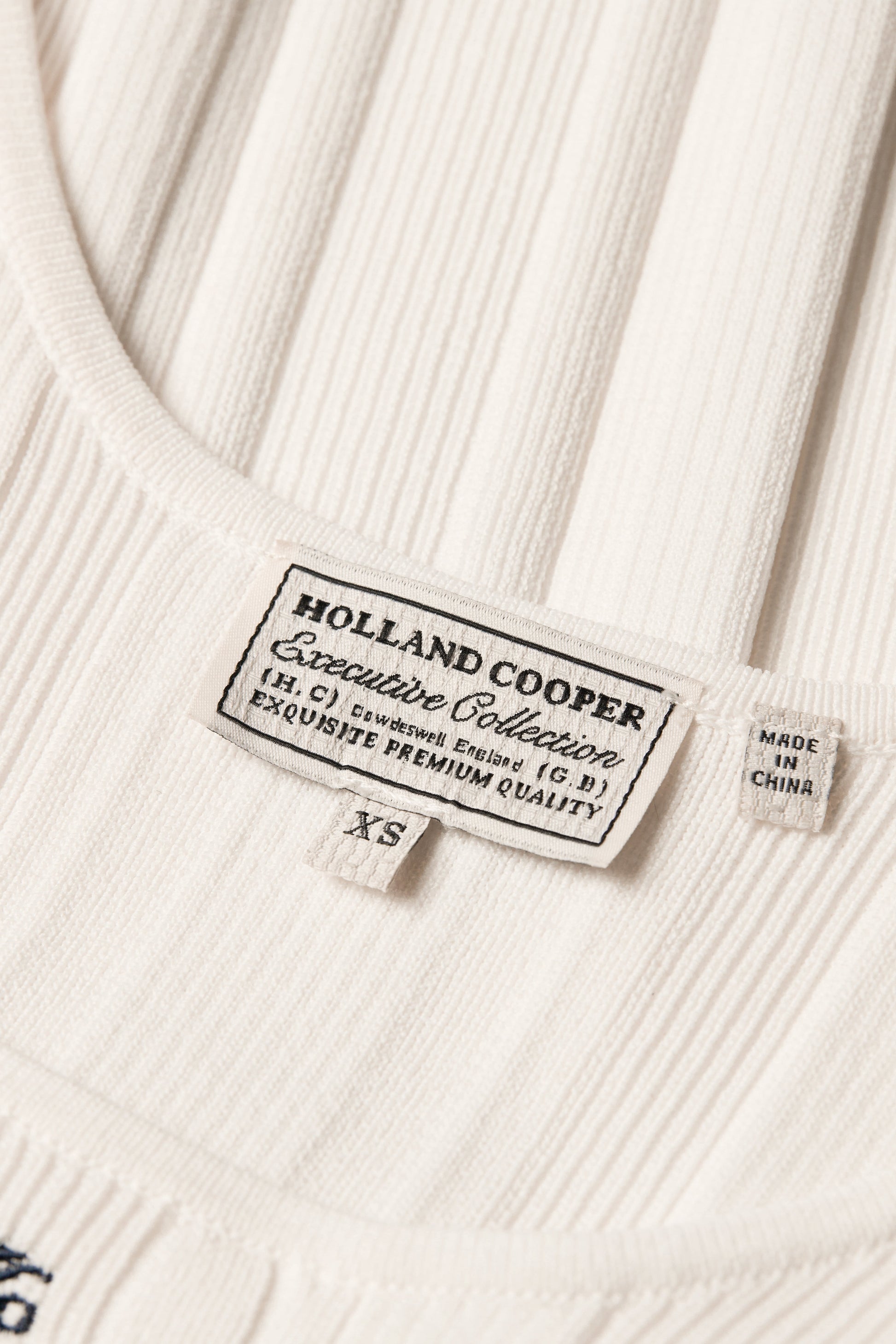 This vest offers a figure-hugging silhouette that accentuates the natural contours of your body. The natural black hue brings a fresh and versatile appeal, making it a perfect staple for any wardrobe. The vest features a sophisticated variegated rib knit that adds texture and depth to the design, while the high-build embroidery along the neckline introduces a touch of artisanal charm. Each strap is adorned with a unique rope-style rivet, providing a nautical twist that complements the overall aesthetic.