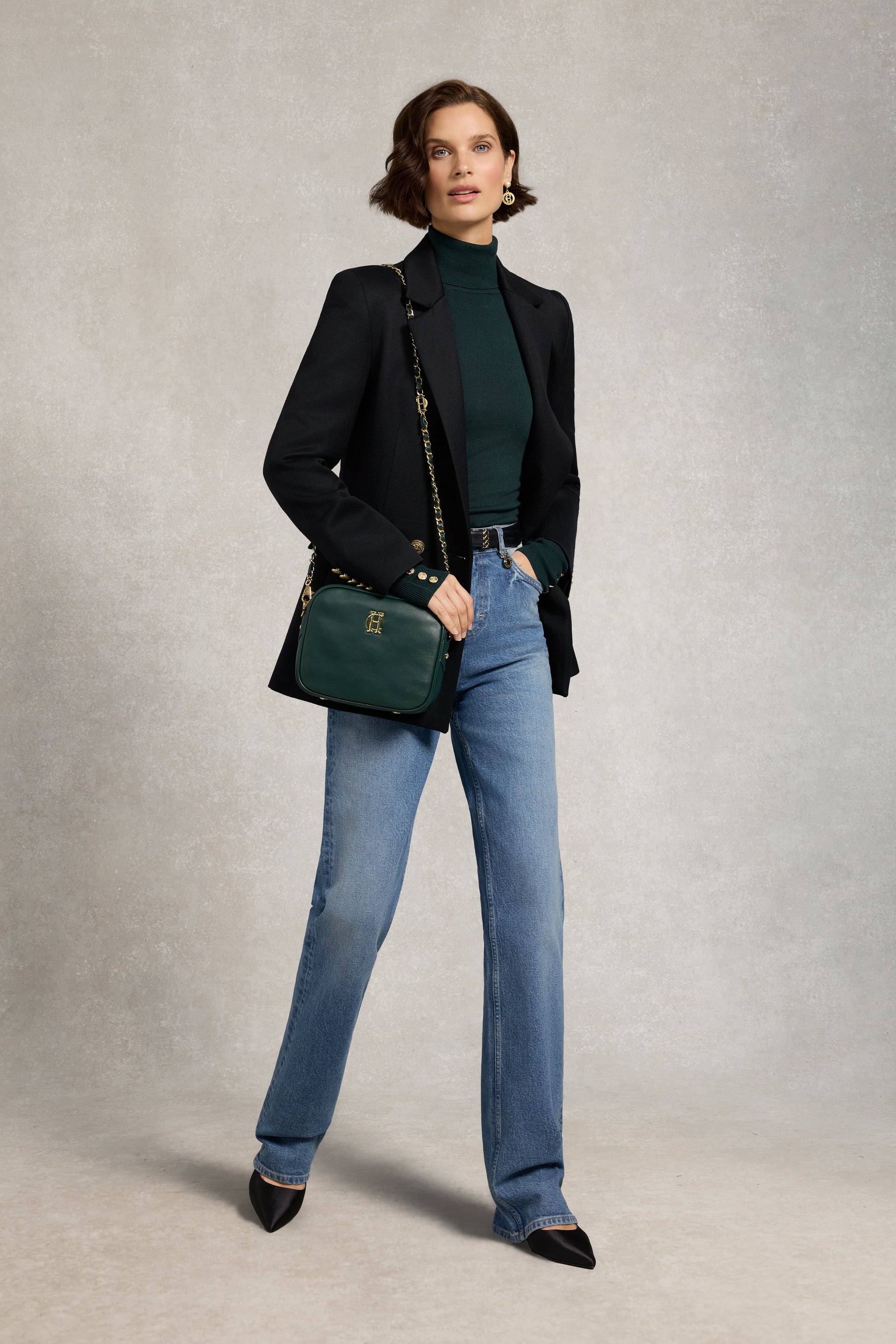 Beautifully crafted from lightly tumbled emerald cow leather, our latest Camera Bag is the perfect blend of timeless elegance and everyday functionality. The compact silhouette is elevated with new vintage-inspired warm gold hardware, bringing a rich, sophisticated finish. Designed with versatility in mind, it features a detachable leather-wrapped chain strap, allowing it to be worn crossbody or carried as a chic clutch. A refined statement piece to elevate any look.