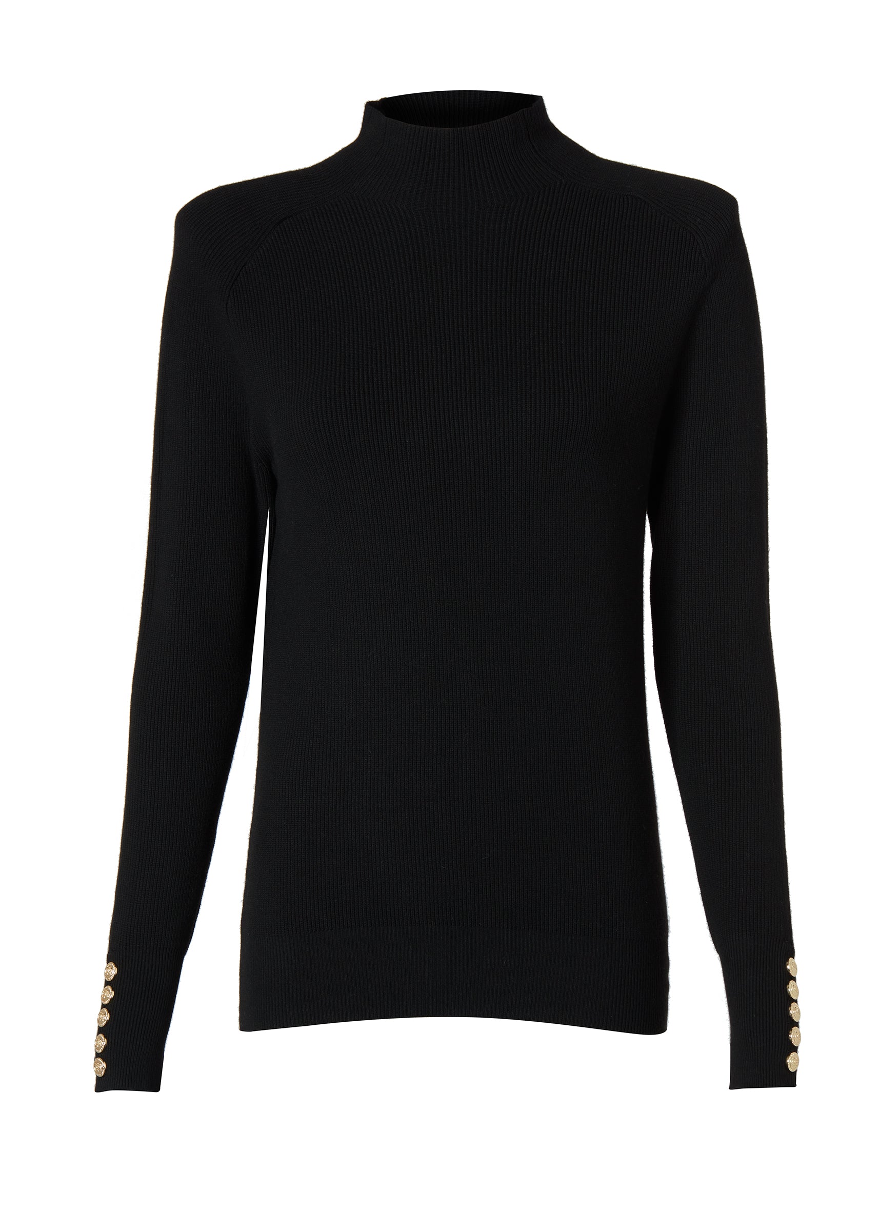 A classic and stylish addition to your wardrobe. This elegant knit features a high neckline and distinctive traveling ribs on the raglan sleeves, adding a unique texture and design. Gold rivets on the cuffs lend a touch of luxury, while the slim fit through the body creates a flattering silhouette. The Tara High Neck Knit is the perfect blend of chic design and refined details, making it an essential piece for any season.