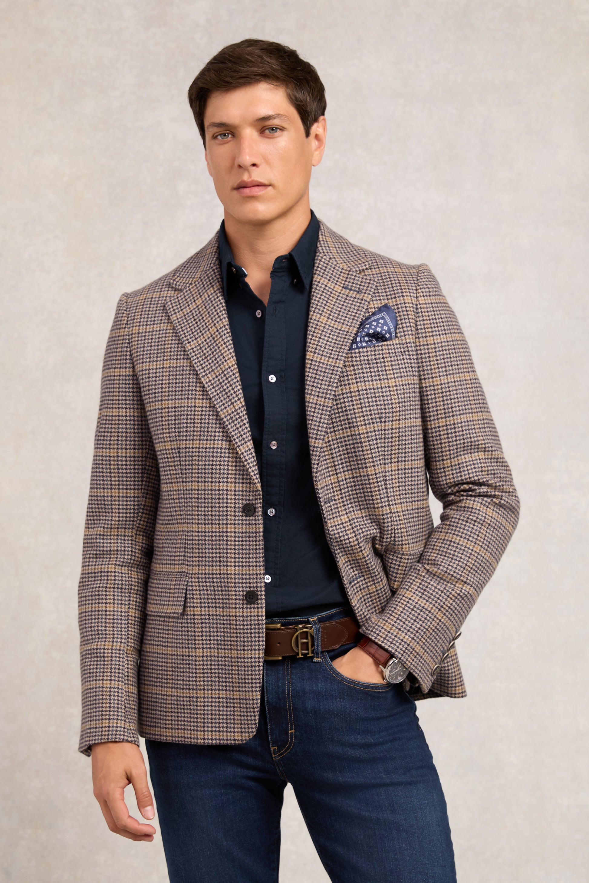 Designed with a single-breasted silhouette and lightly padded shoulder construction, this Single Breasted Blazer showcases a preppy style with a modern elevation. Drawing inspiration from our British heritage, each blazer has been carefully crafted in our UK mills from the finest of Scottish tweeds. With classic notch lapels and neat horn buttons to fasten, the contrasting under collar makes for a contemporary twist. Elegantly lined with a luxurious satin twill with double welt pocket detailing. Finished with traditional Holland Cooper detailing, braided lapels and practical chain hanger loop.