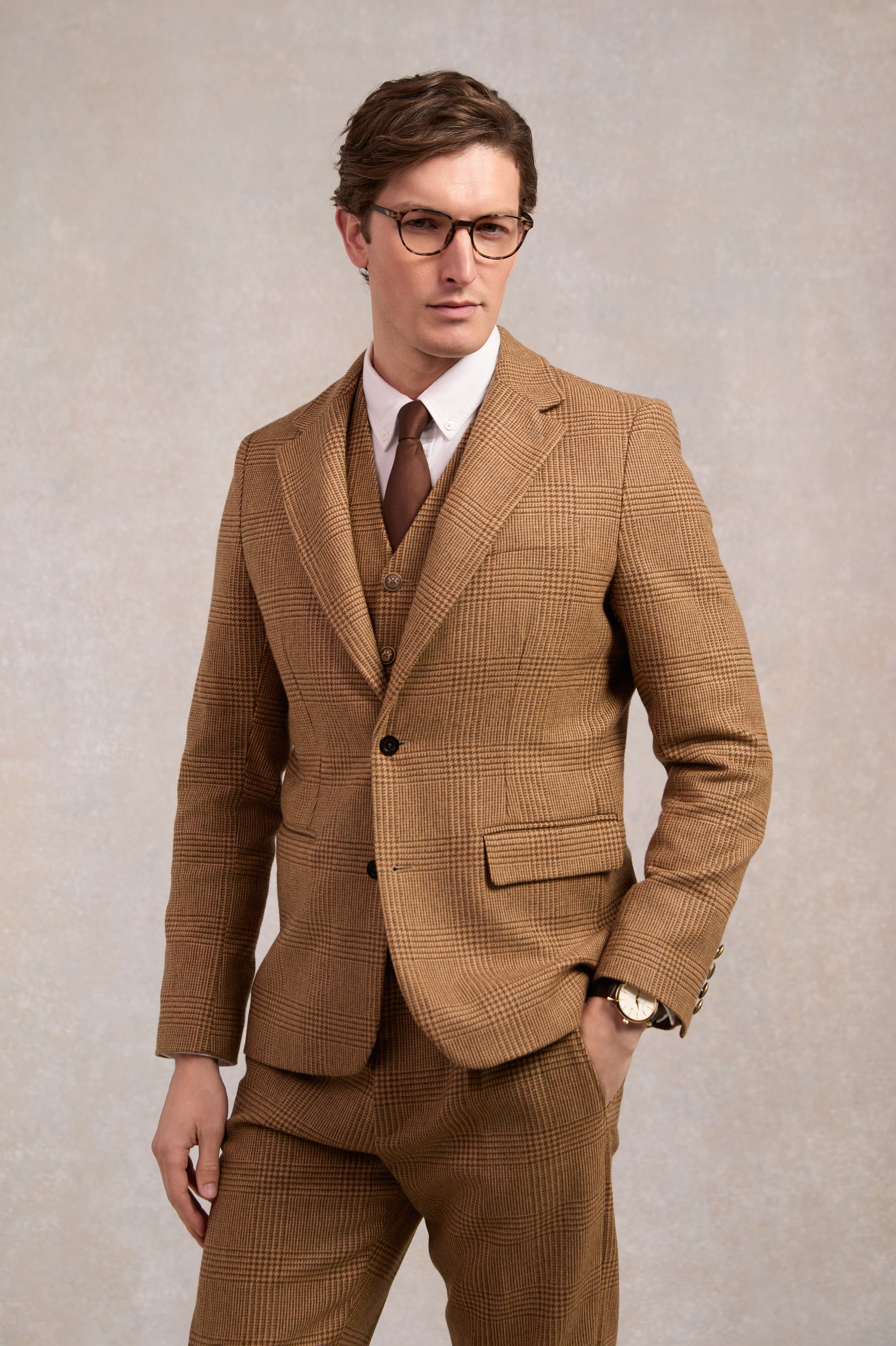 Designed with a single-breasted silhouette and lightly padded shoulder construction, this Single Breasted Blazer showcases a preppy style with a modern elevation. Drawing inspiration from our British heritage, each blazer has been carefully crafted in our UK mills from the finest of Scottish tweeds. With classic notch lapels and neat horn buttons to fasten, the contrasting under collar makes for a contemporary twist. Elegantly lined with a luxurious satin twill with double welt pocket detailing. Finished with traditional Holland Cooper detailing, braided lapels and practical chain hanger loop.