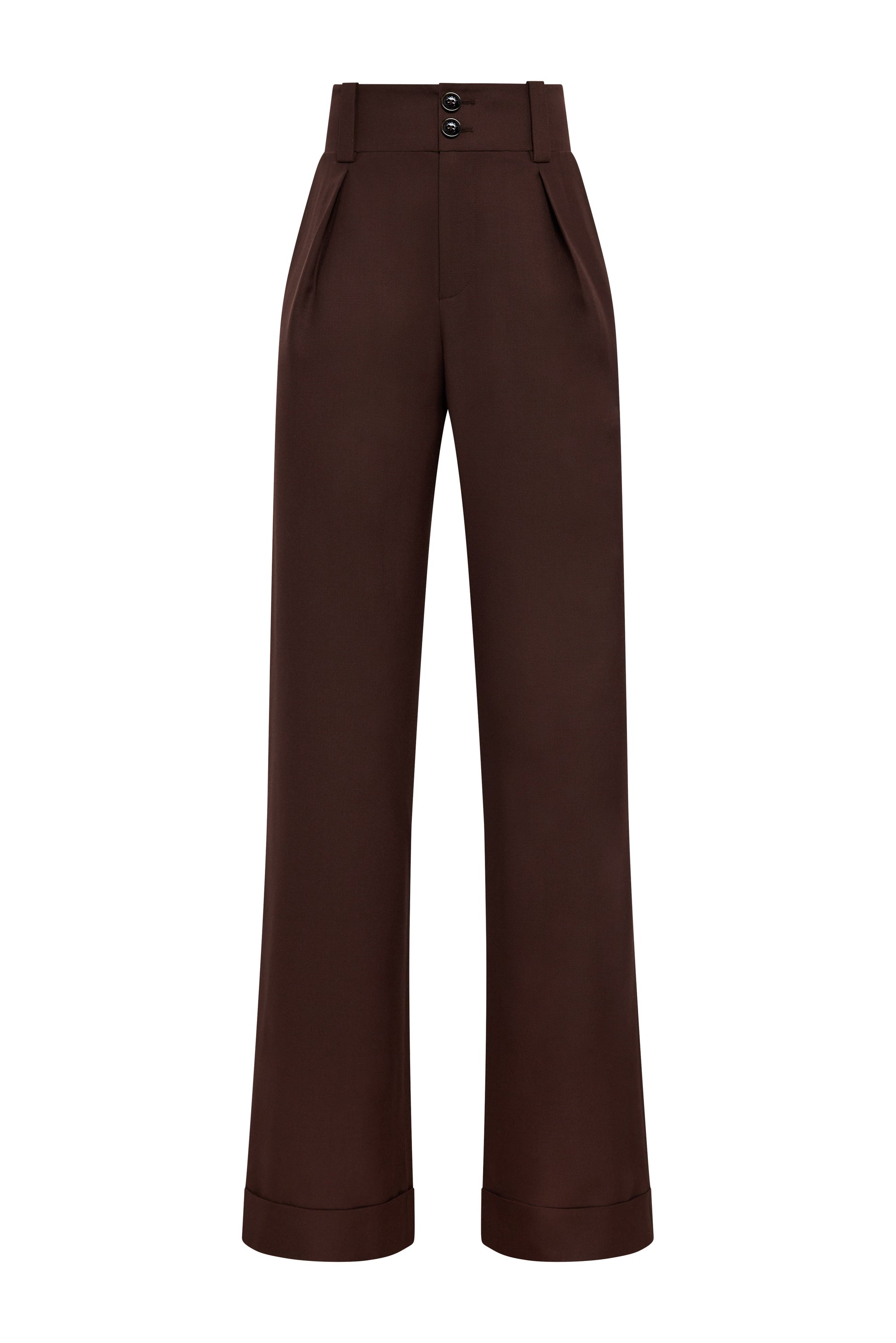 Simple and refined, these wide-leg trousers are the perfect balance of smart and casual that effortlessly take you from day to night. Made from a luxurious wool blend that's fully lined, these trousers sit high on the waist with a wide waistband to create a flattering silhouette that suits all body shapes. Featuring two large side pockets and adorned with our iconic gold hardware for an added touch of luxury. These trousers have been hand cut and made in England using wool woven in the UK.