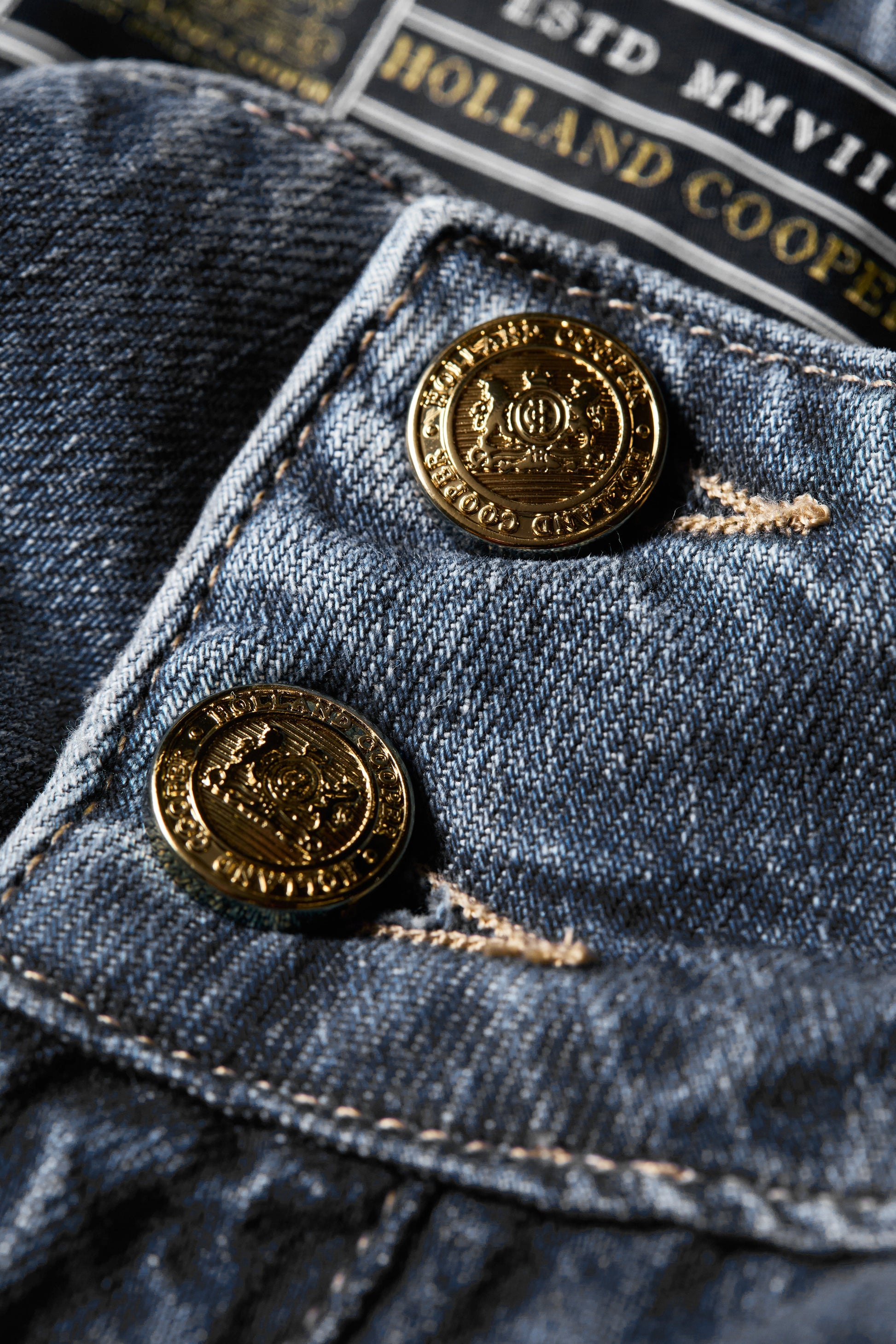 Vintage-inspired patch pockets at the front and familiar double-welt pocket styling at the back add timeless character, while signature gold metal hardware details elevate the design.