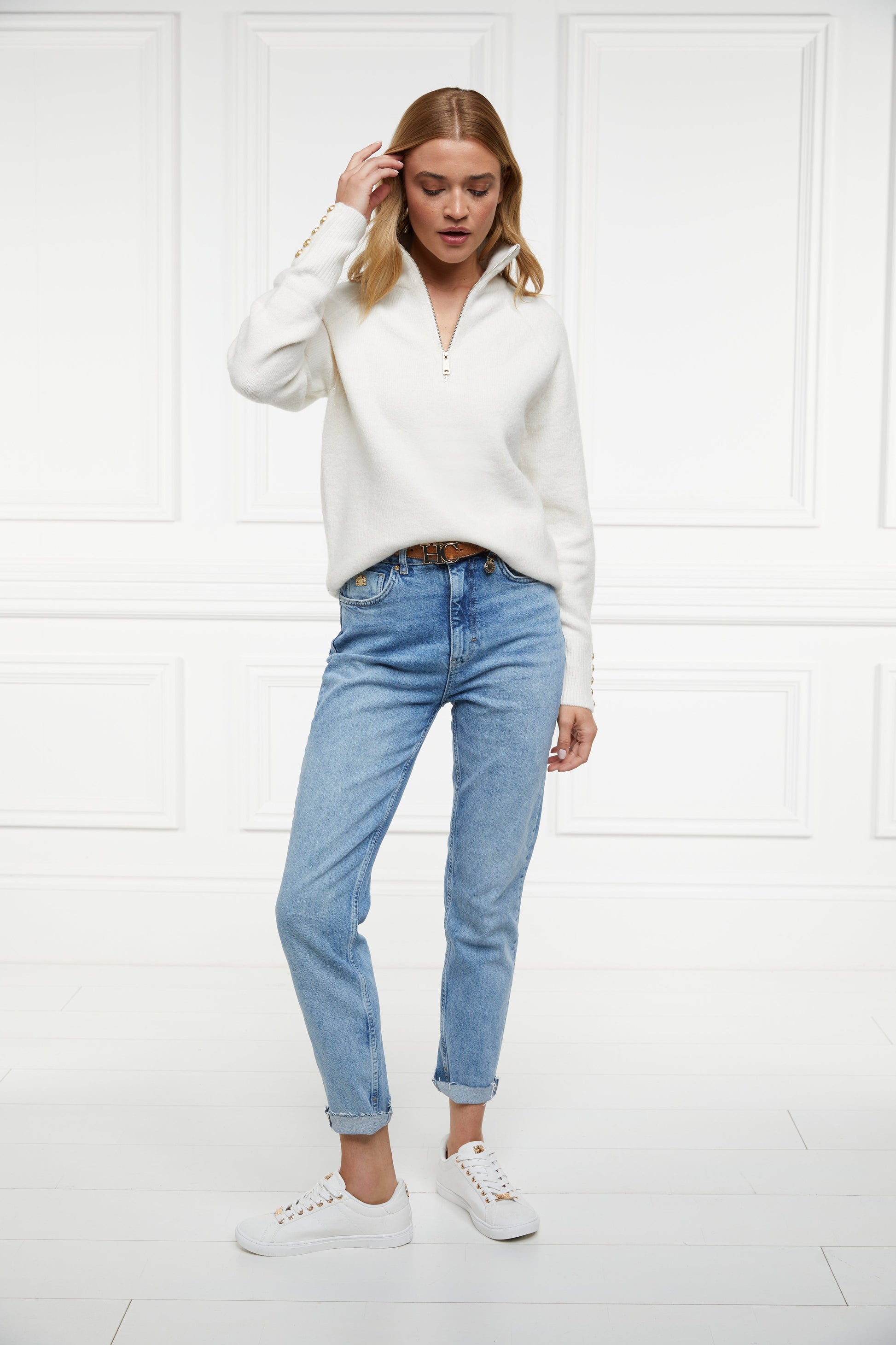 Designed from a super soft alpaca blend, this half-zip jumper is crafted from a luxurious yarn. Creating a perfect fusion of timeless style and modern flair, this jumper has been designed with a slim fit and henley zip closure. Elevated with our iconic hardware to the cuffs.