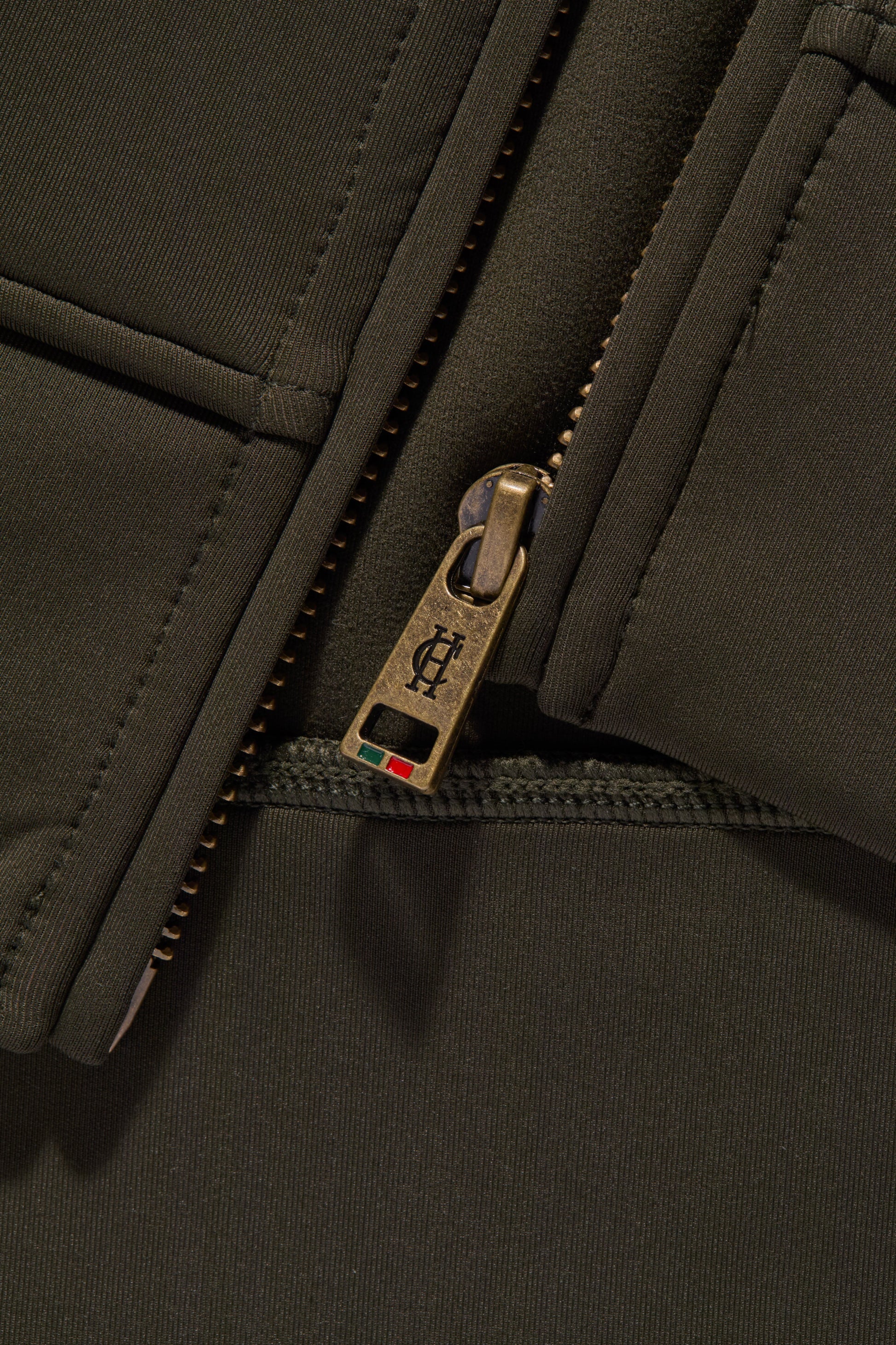This performance-driven piece offers exceptional comfort and flexibility. The smooth, soft-touch fabric drapes elegantly while maintaining its refined shape. Distinguished by our signature high-build embroidery at the chest, this luxe athletic essential features a sherpa-lined collar for added warmth and sophistication. Practical welt side pockets and a branded zip pull complete this refined design. The relaxed silhouette ensures unrestricted movement while maintaining a polished appearance.
