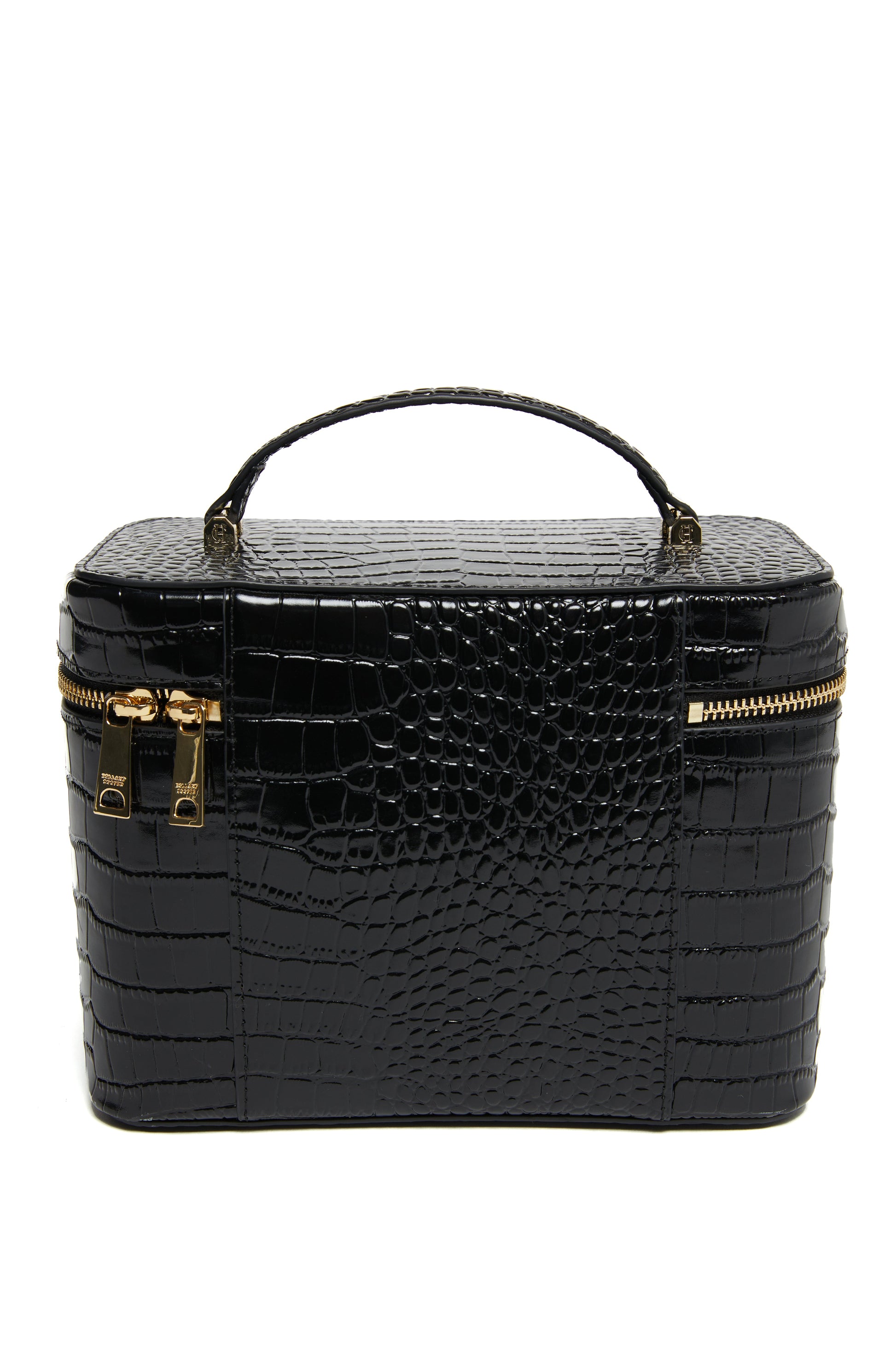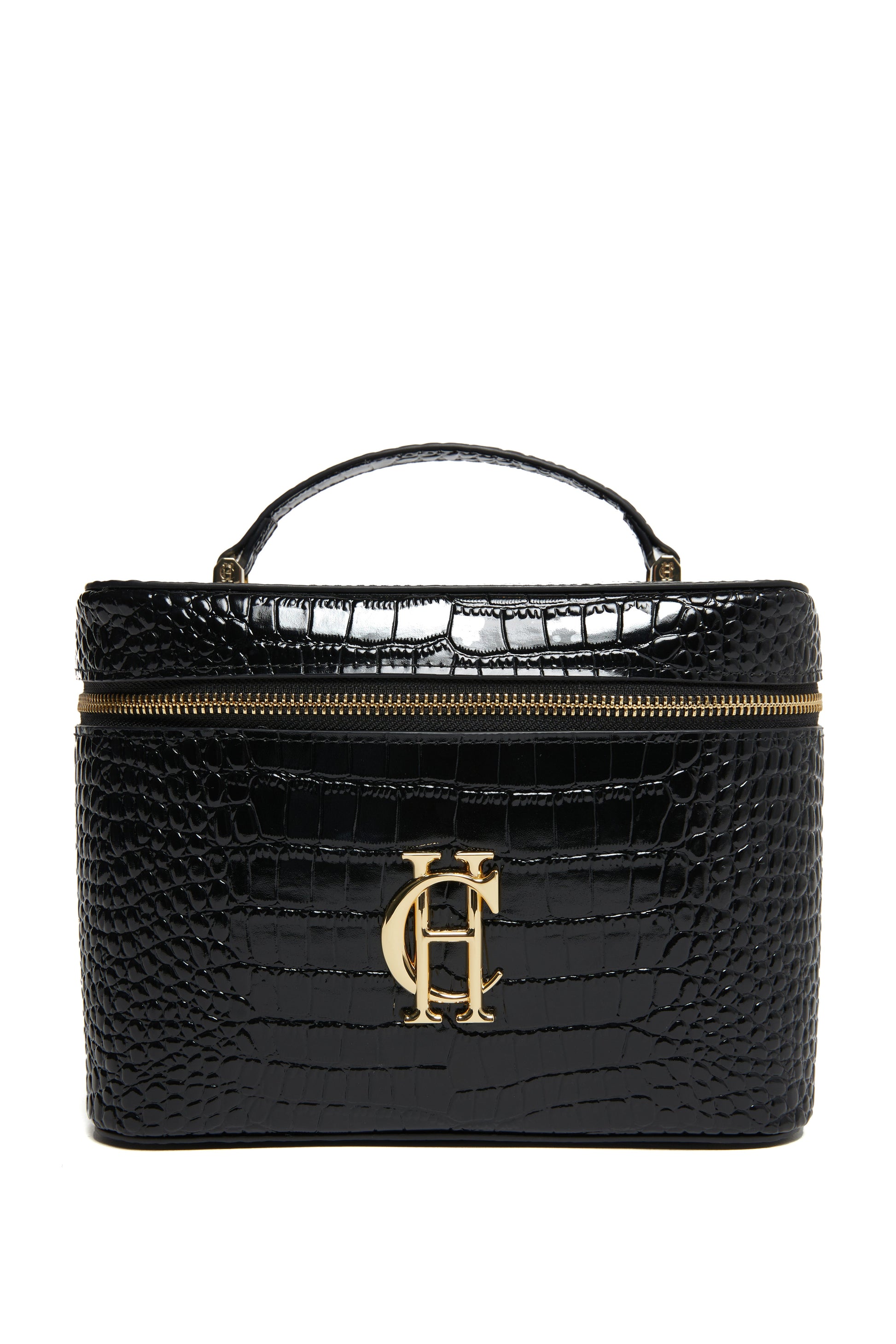 Perfect for securing and organising toiletries and essentials while on the go, our Travel Makeup Bag has been created from our classic croc-embossed leather. Featuring an internal divider & mirror, this accessory truly is the ideal travel companion. Detailed with our iconic gold hardware & HC branding.