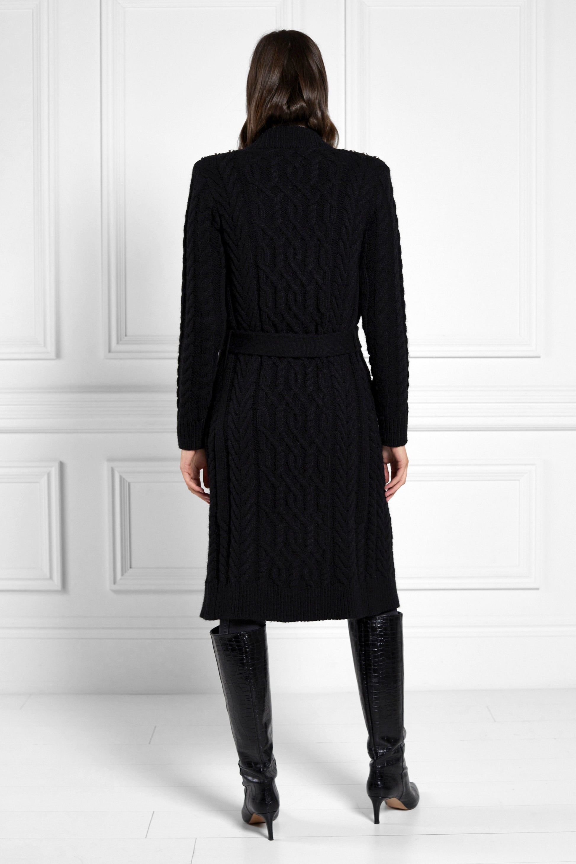 A classic long length cardigan created from a soft yarn fabric, the Windsor Cable Midi Cardigan has been designed with a wrap closure to the front with self tied waist. With a full ribbed knitted lapels and signature gold hardware on the shoulders and cuff, this cardigan is an elevated everyday essential.