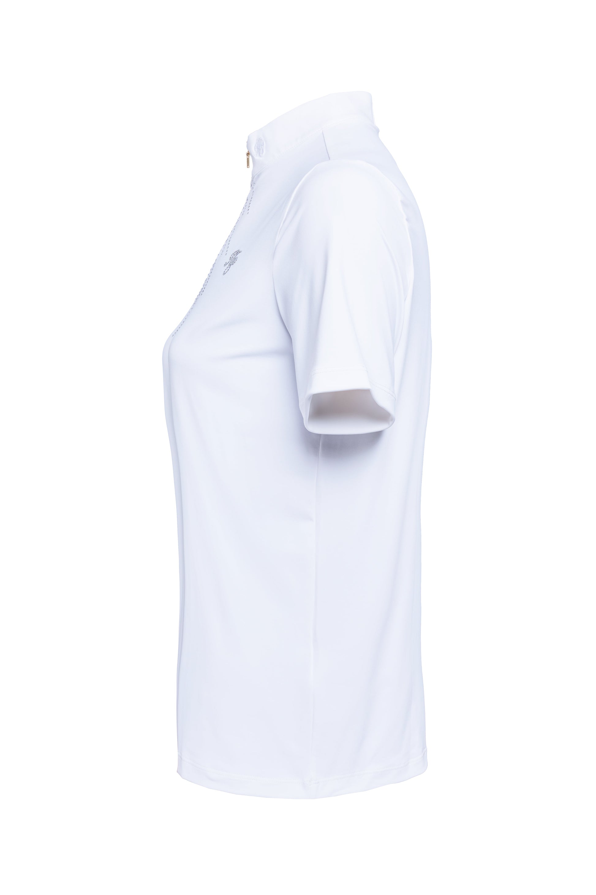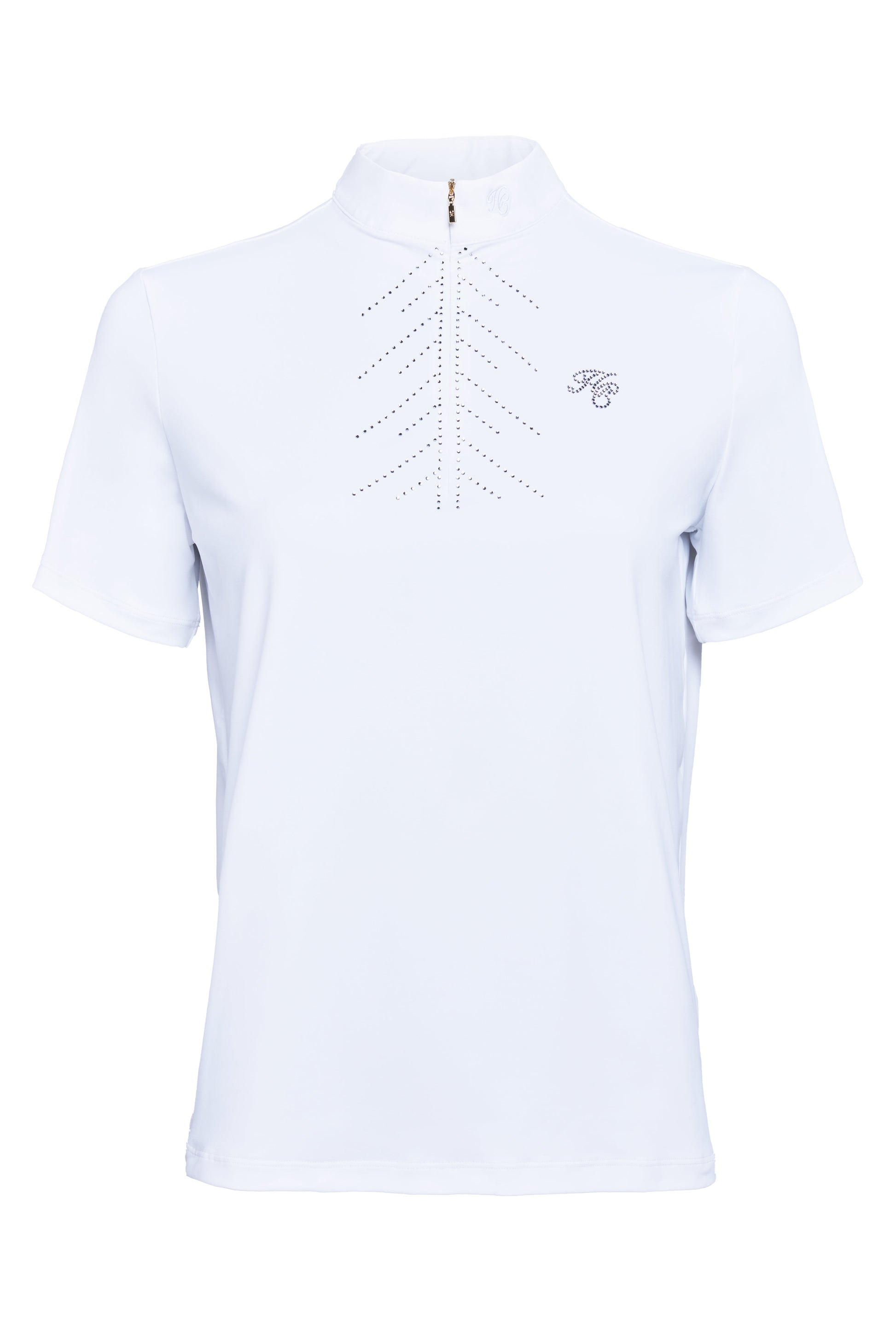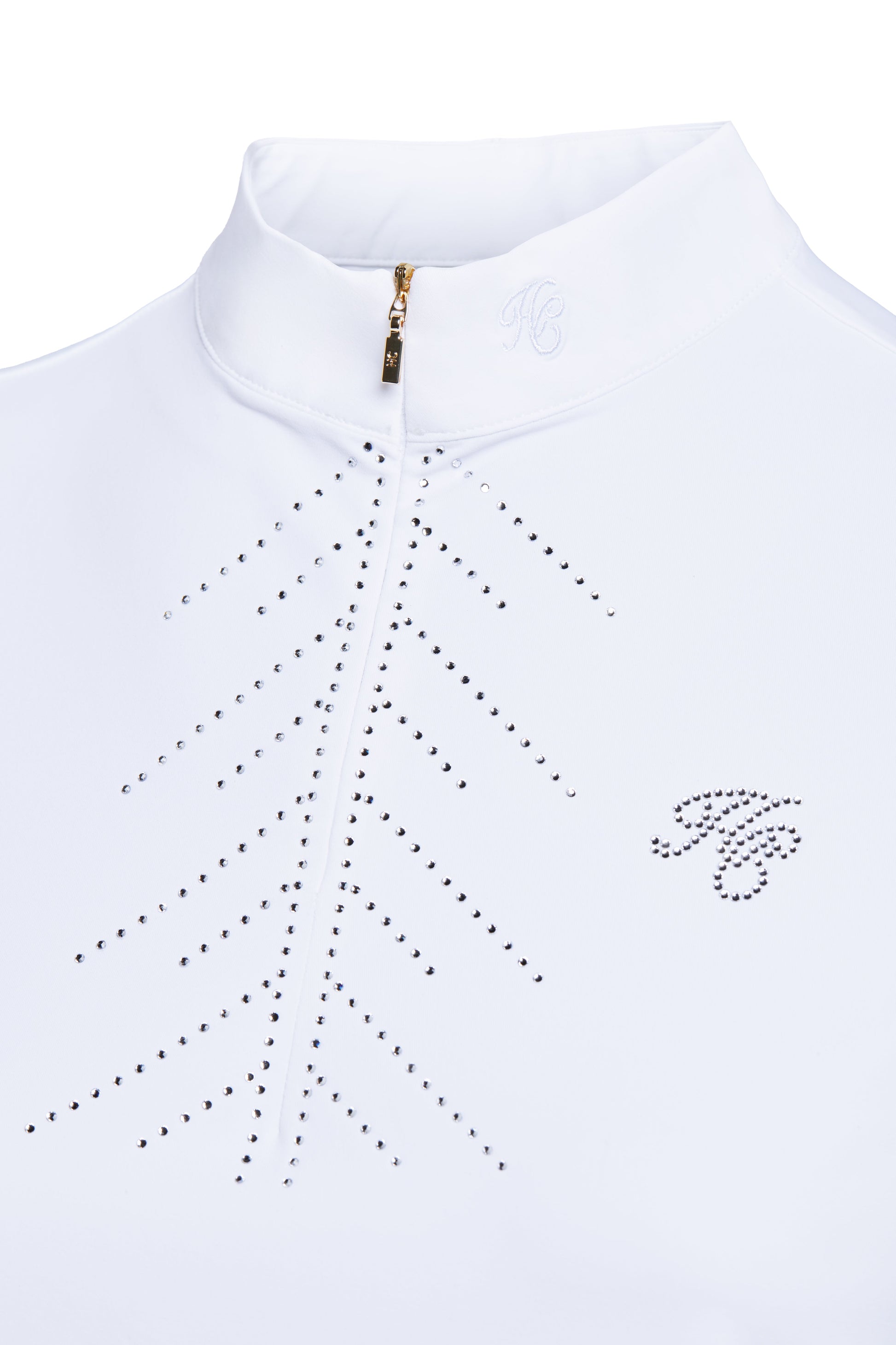 Introducing the epitome of competition wear – the Windsor Short Sleeve Base Layer. Designed with a relaxed fit, this shirt seamlessly blends style and functionality. Crafted from a durable and soft touch fabric with a woven collar, this piece is both stylish and practical. Adorned with a crystal HC embellishment on the chest and a captivating crystal pattern along the centre front, this shirt becomes a statement piece that stands out in the equestrian arena.