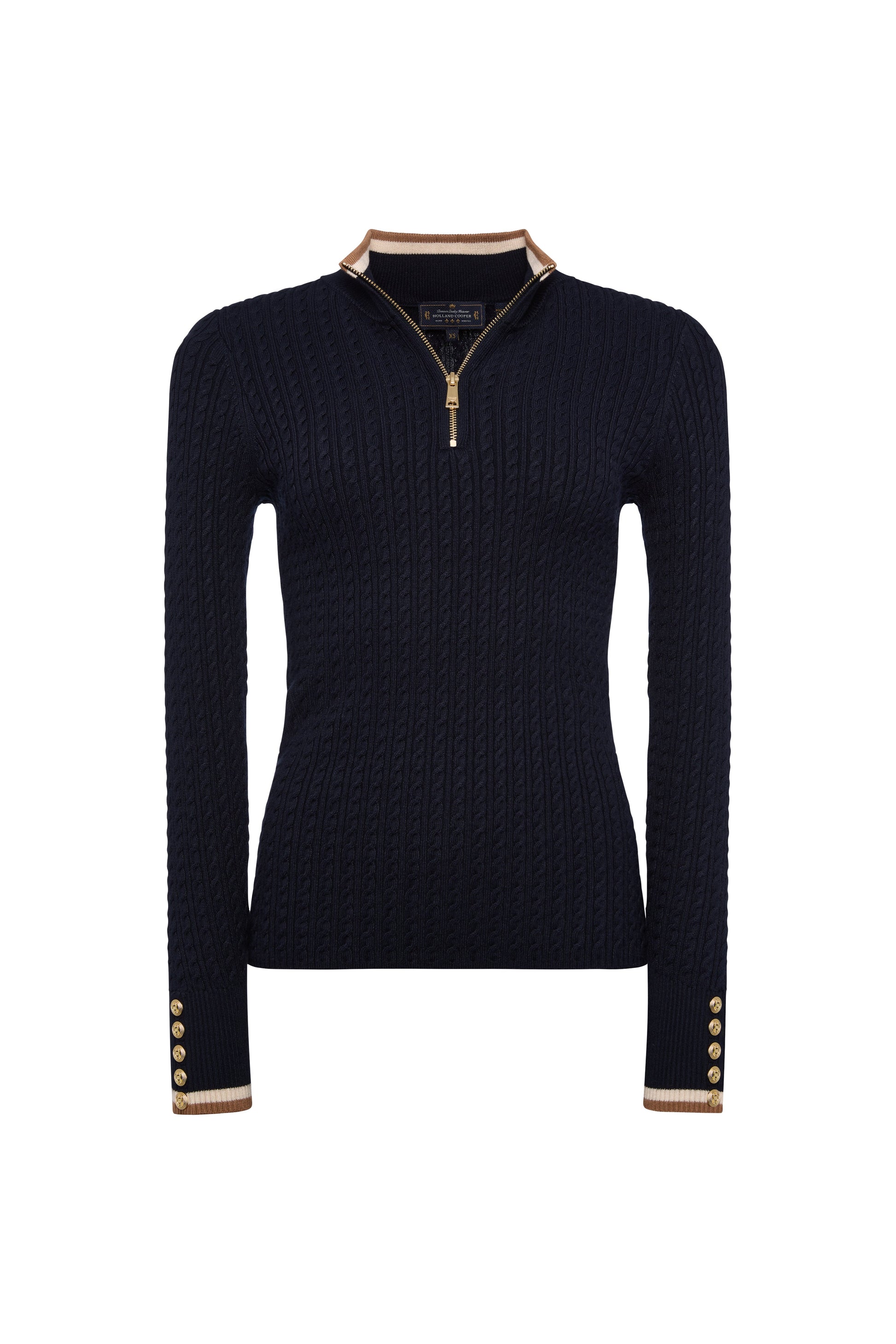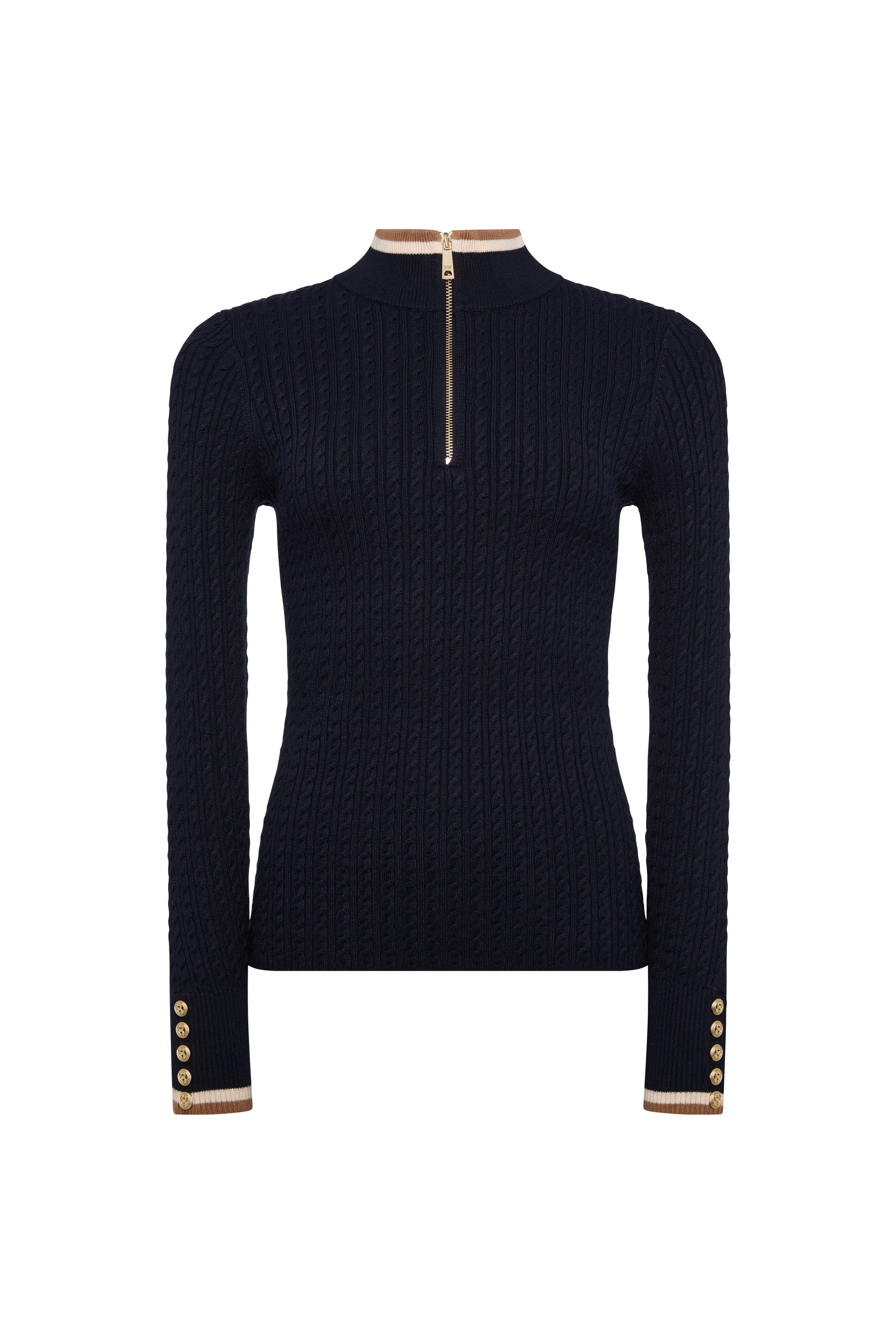 A fresh update on a signature silhouette, the Zoe Quarter Zip Knit returns this season in an all-new colourway. Crafted with a classic cable knit texture, this piece combines heritage charm with contemporary style. Featuring subtle branded embroidery on the left chest and contrast tipping on the collar, the quarter zip neckline offers effortless layering and a sporty edge. A versatile knit that’s both timeless and transitional, perfect for elevating your everyday wardrobe.